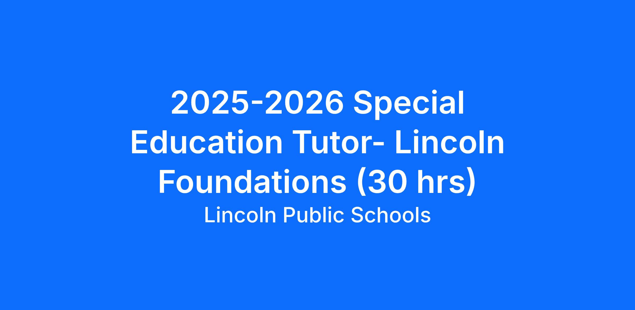Special Education Tutor- Lincoln School Grades K-4 (Foundations Program)