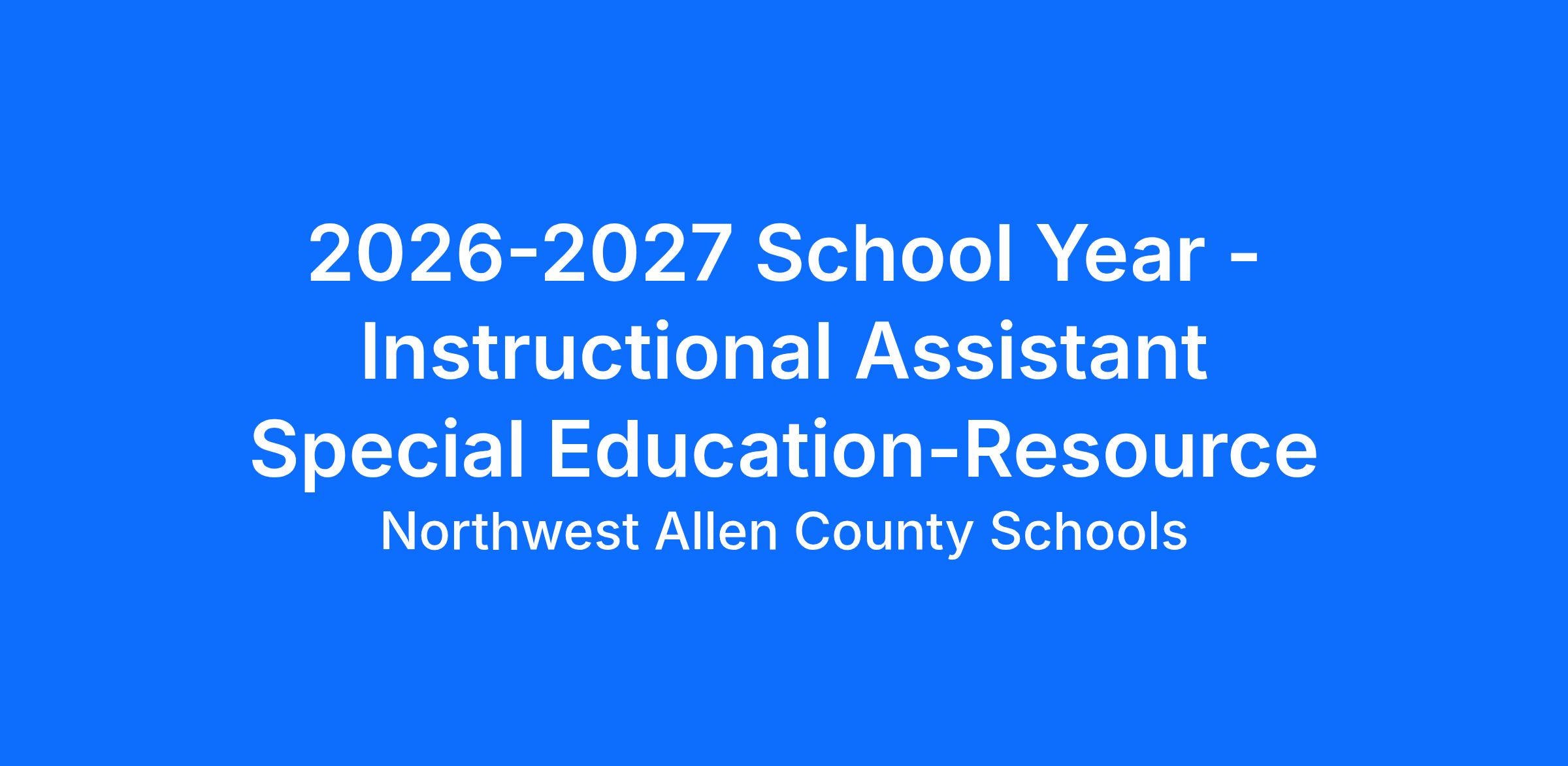 Instructional Assistant Special Education Resource Hours/day: 5.0 hours