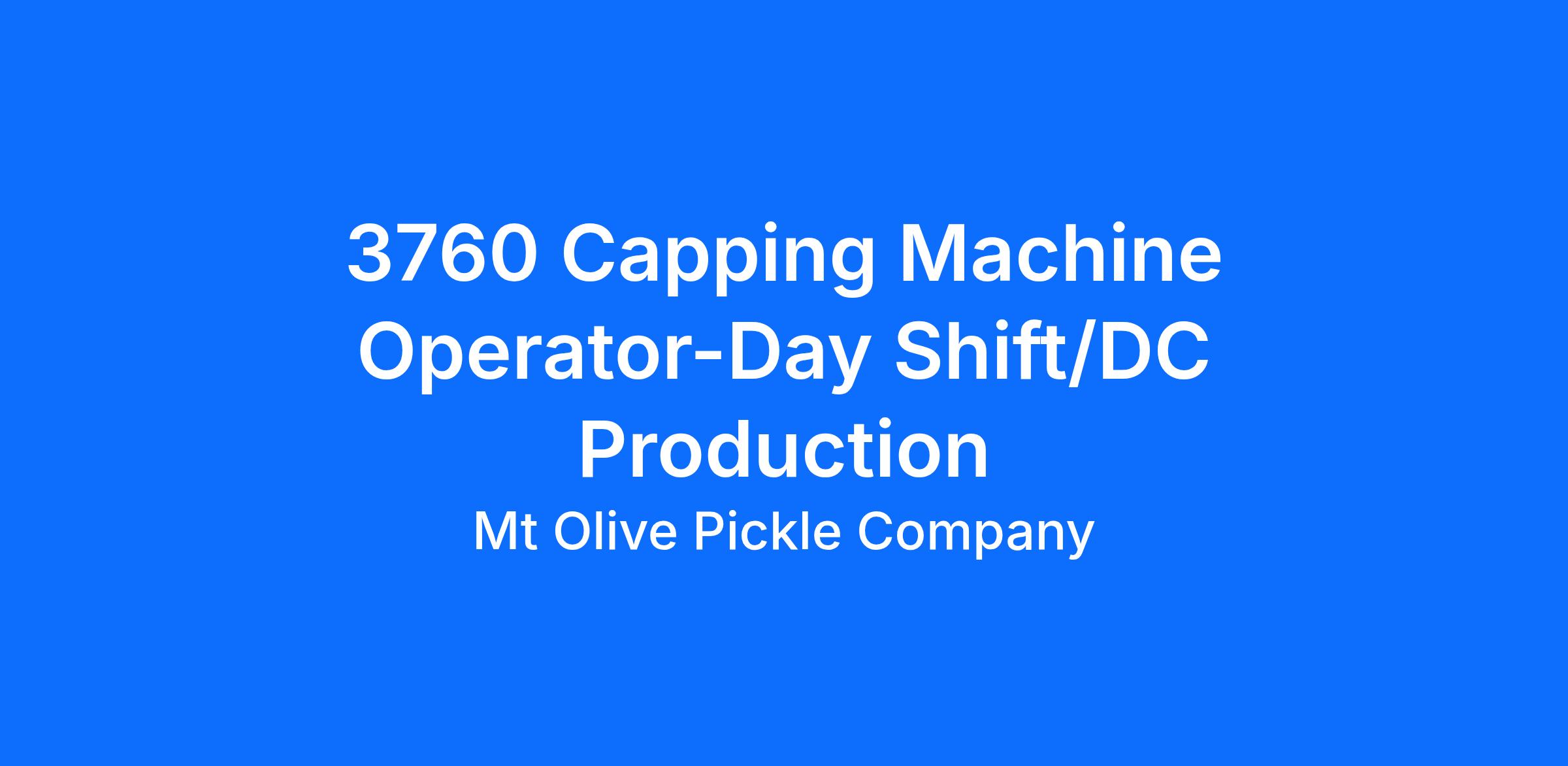 We have an opening for Day Shift Capping Machine Operator at the DC Production.