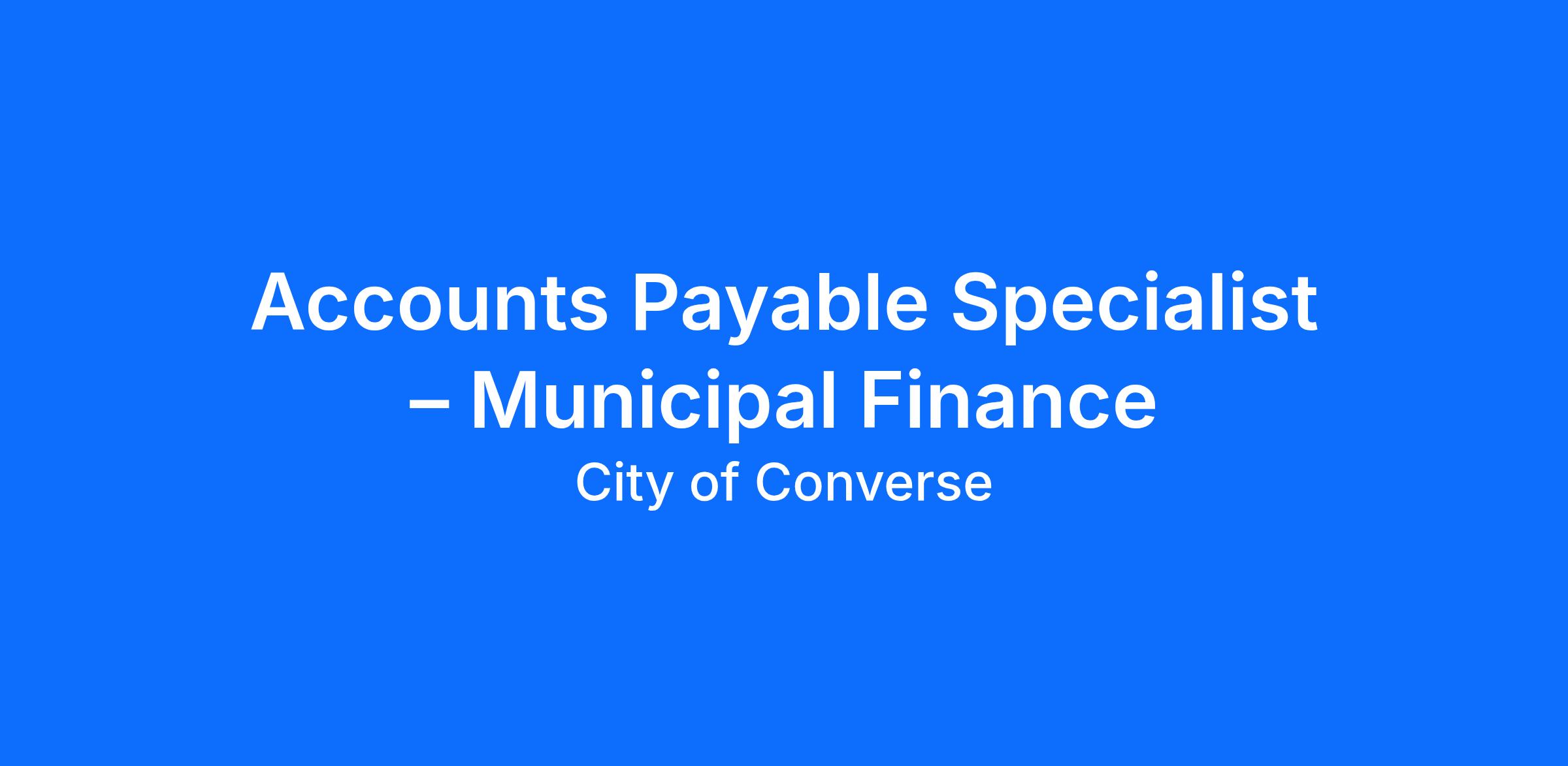 Job Title: Accounts Payable Specialist – Municipal Finance