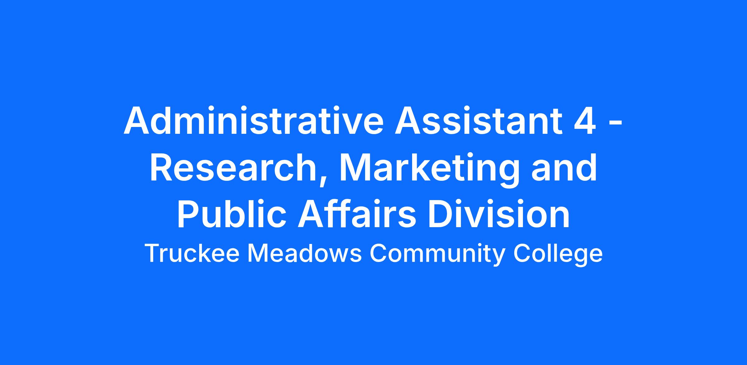 Truckee Meadows Community College (TMCC) is recruiting for an Administrative Assistant 4 to provide administrative support to the Research, Marketing and Public Affairs division, under the leadership of the Executive Director. The Administrative Assistant 4 will have additional high-profile duties in the Marketing department to ensure quality customer service with internal and external constituents, and will oversee key components of the ad campaign and branding throughout the community. This position will: