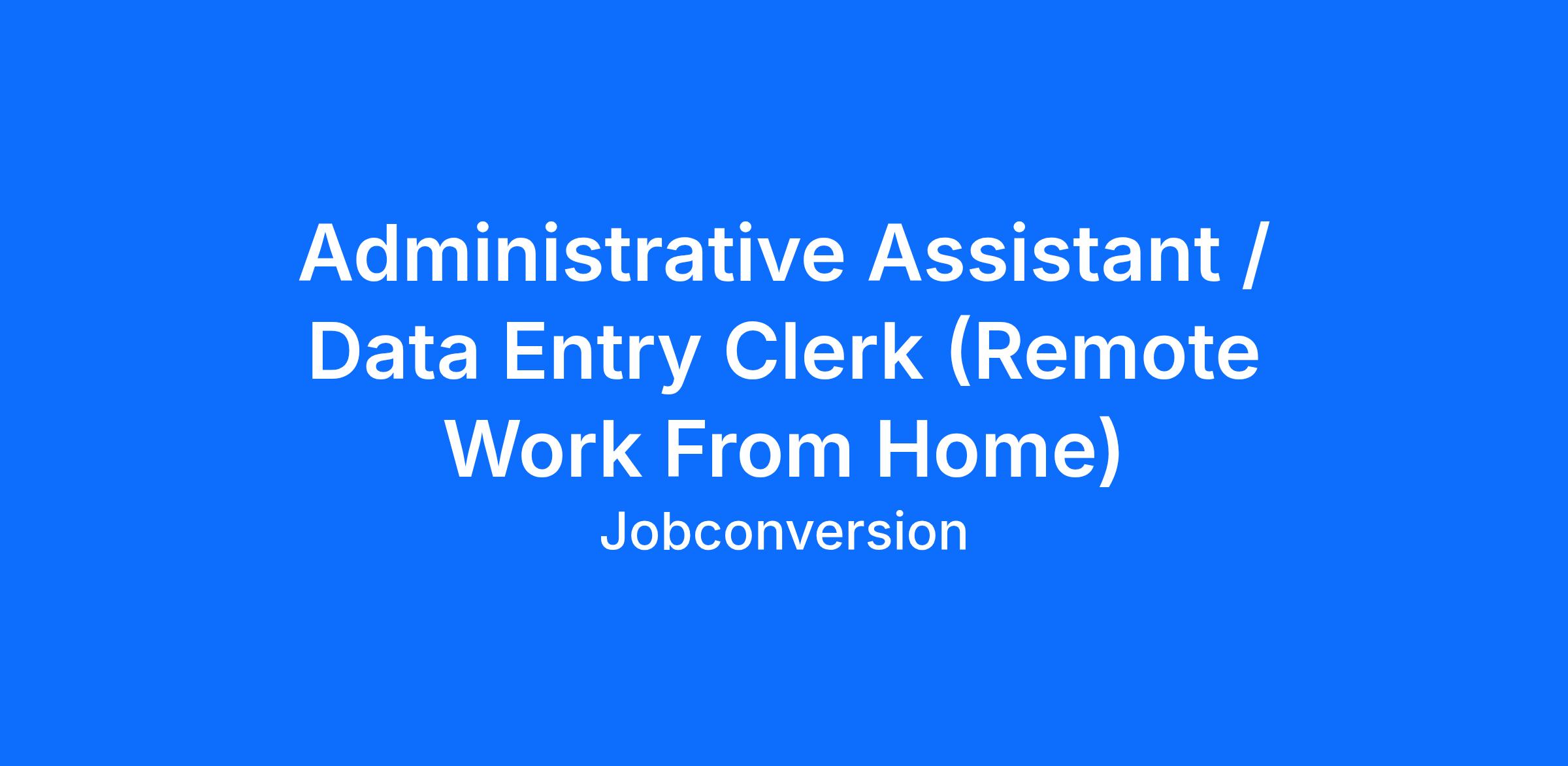 Administrative Assistant / Data Entry Clerk (Remote Work From Home)