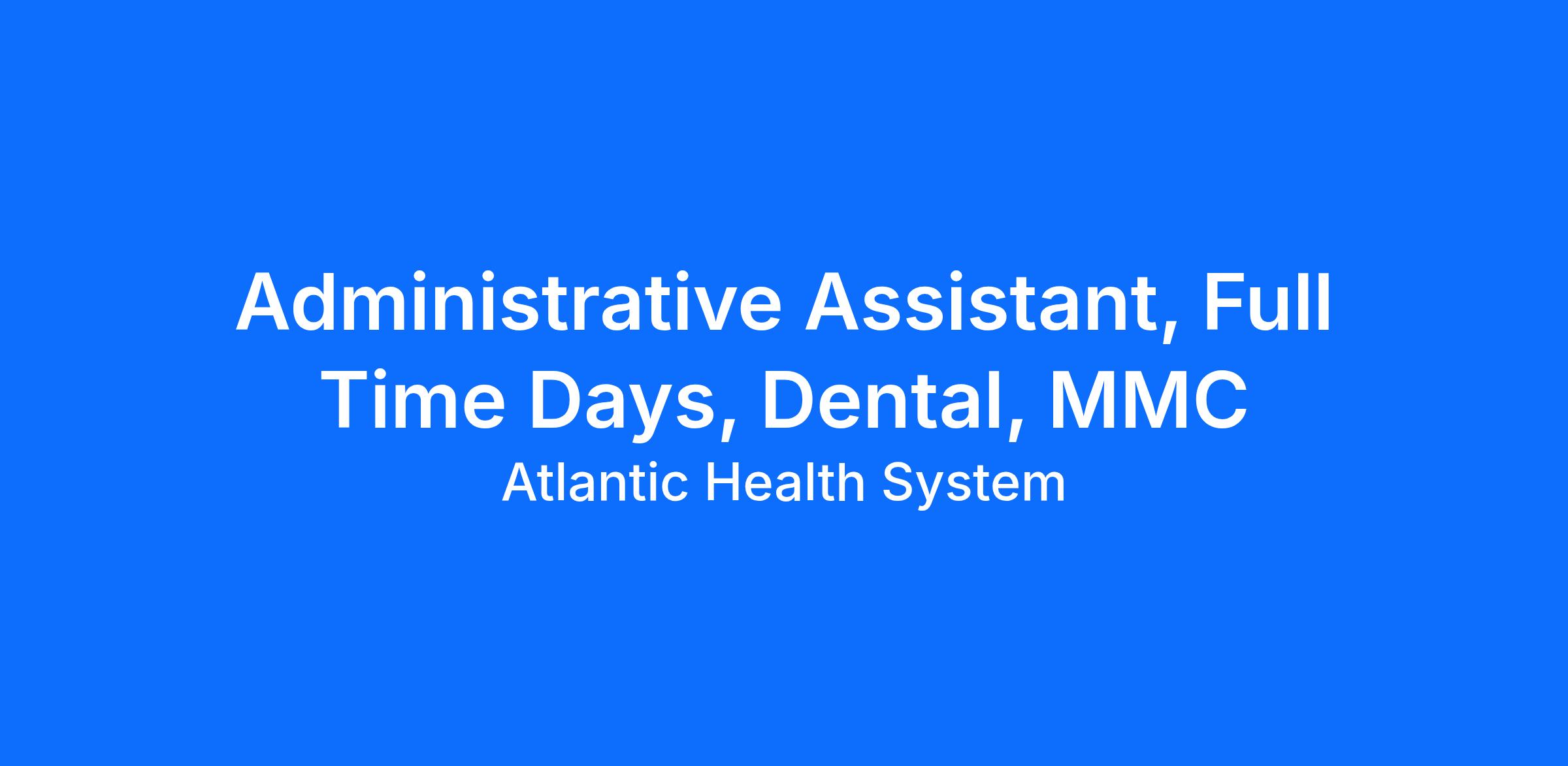 Administrative Assistant, Full Time Days, Dental, MMC