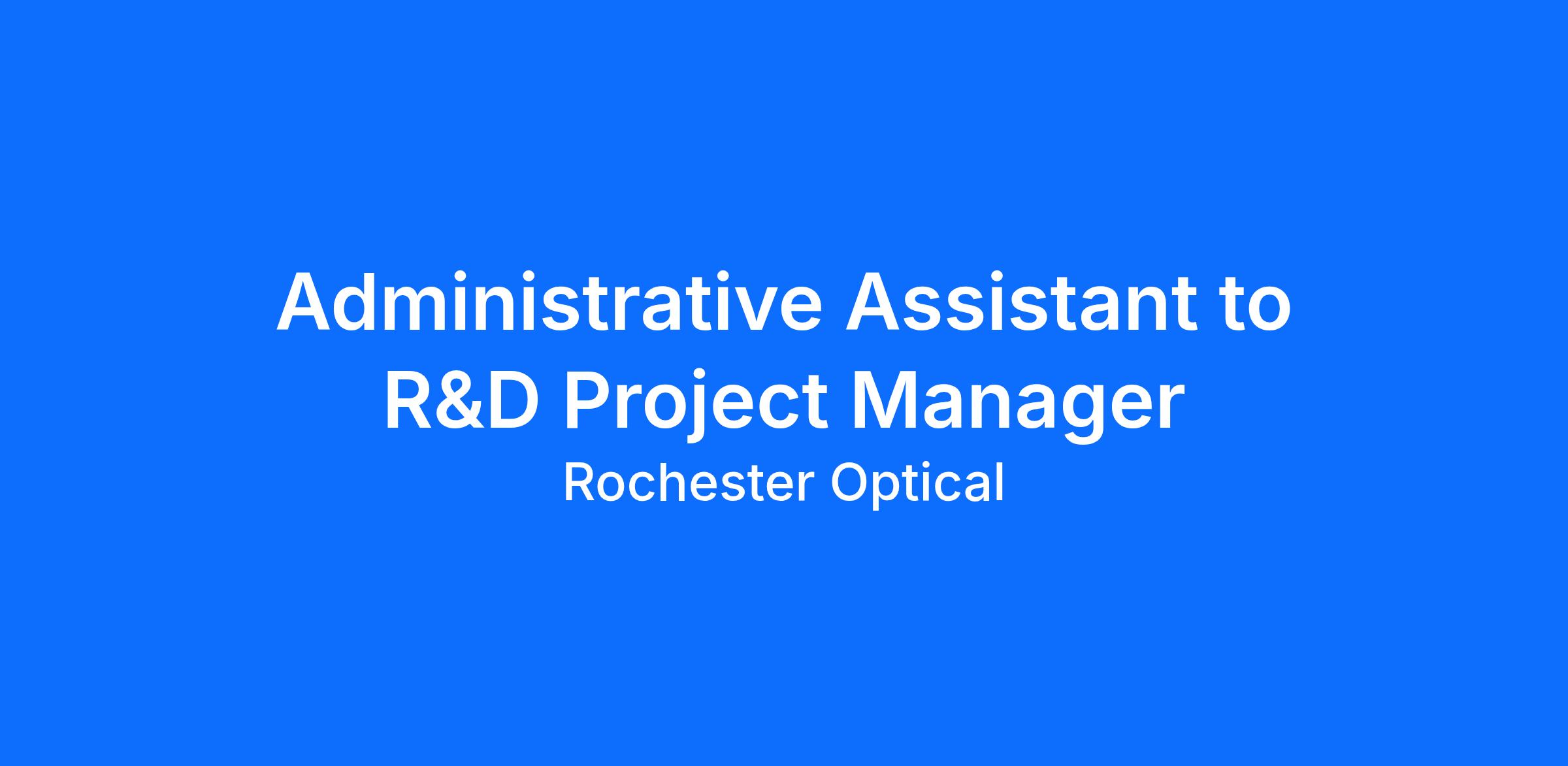 Rochester Optical is seeking an experienced Administrative Assistant to provide comprehensive administrative and organizational support to the Chief Executive Officer (CEO) and the Research & Development Project Manager.