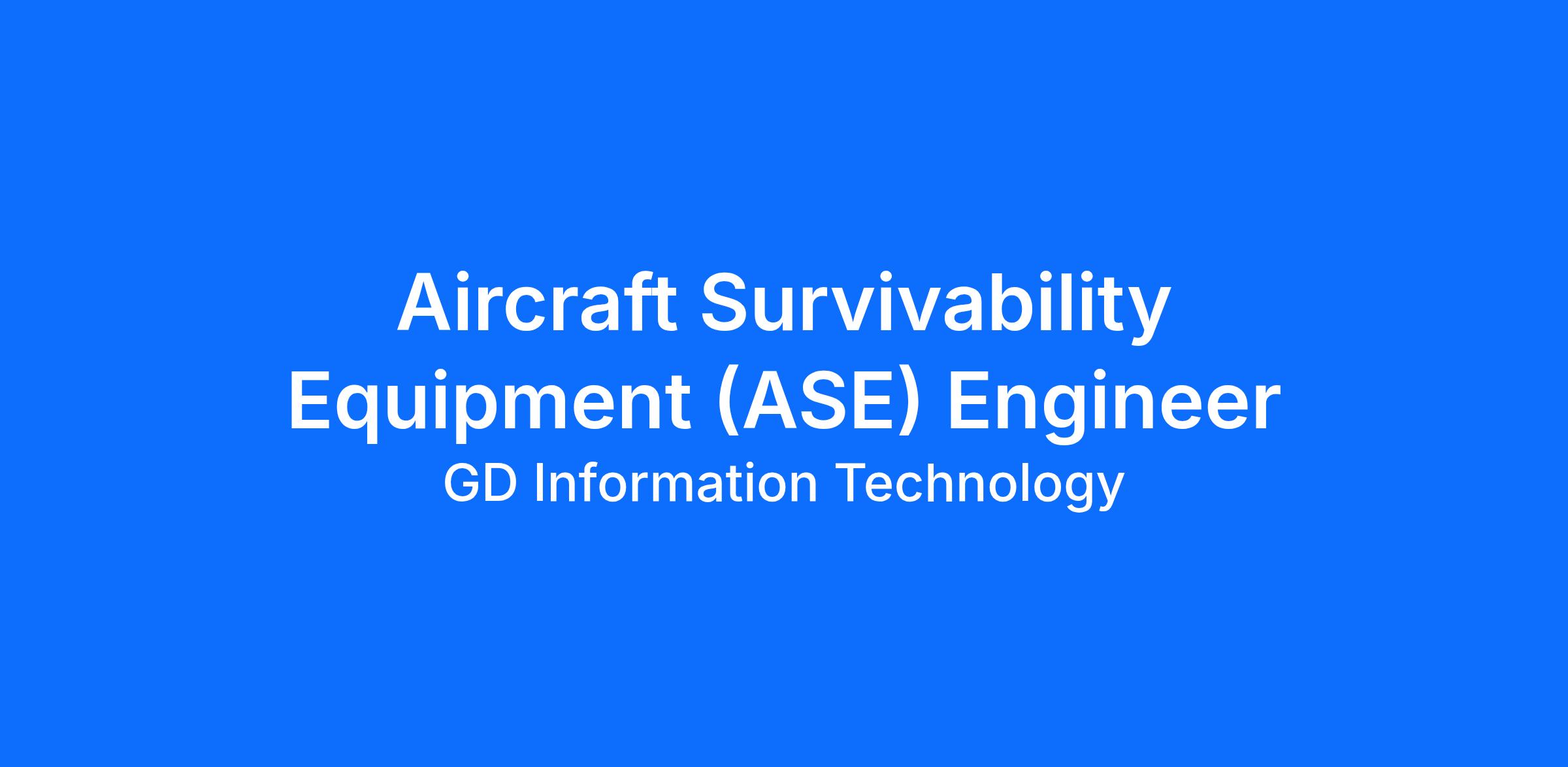 The ASE Engineer for JBLM will primarily support the hardware family - Aircraft Survivability Equipment (ASE): Common Missile Warning System (CMWS) (AN/AAR-57) and Infrared Countermeasures (IRCM). Candidate must have good communication skills in the military Aviation sector.