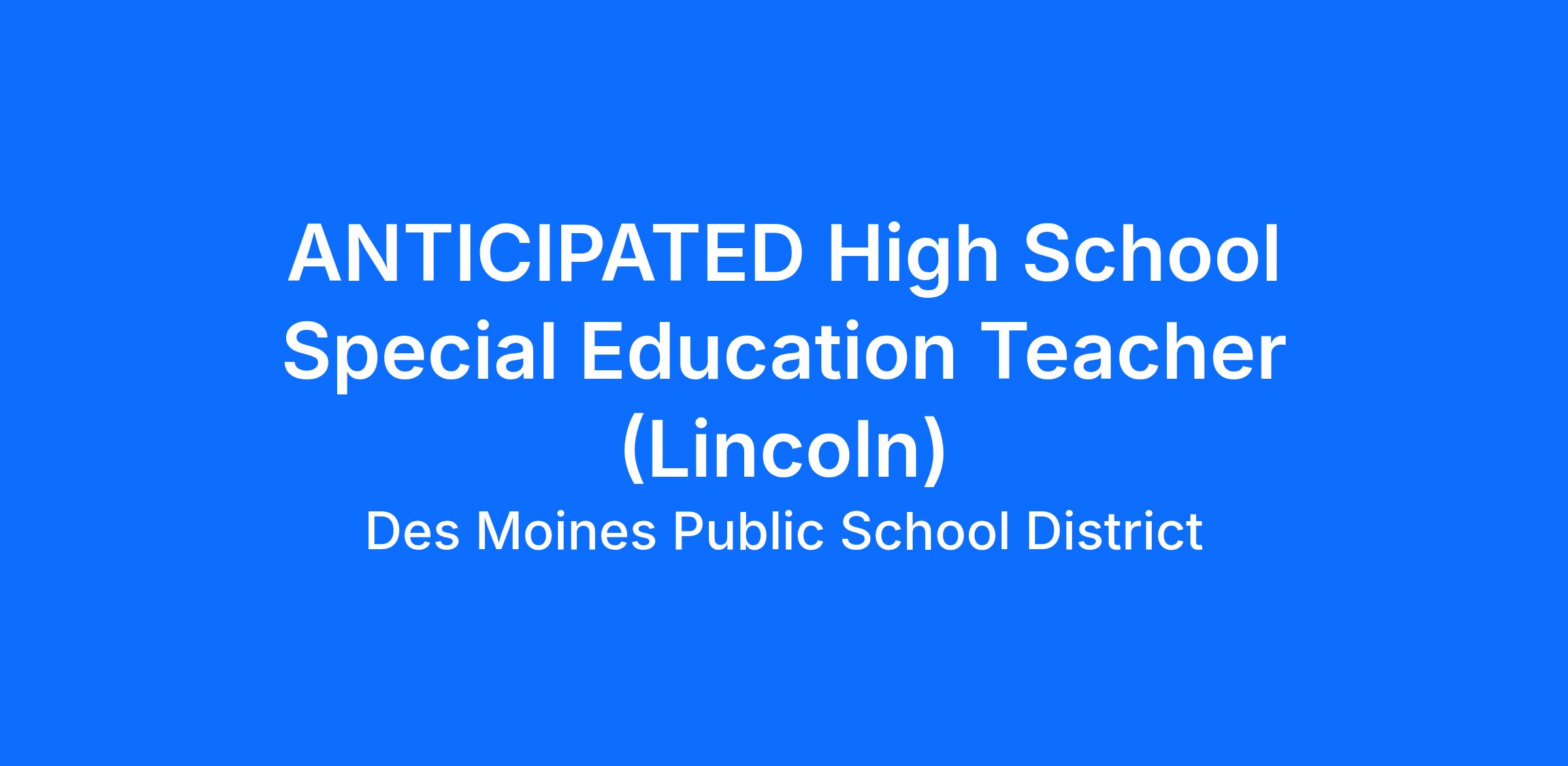 Des Moines Public Schools is seeking qualified applicants for the 26-27 school year to serve as a Strat 1 Special Education Teacher. This position will start in August 2026. This position will provide instruction in science courses, so applicants must be comfortable teaching science coursework.