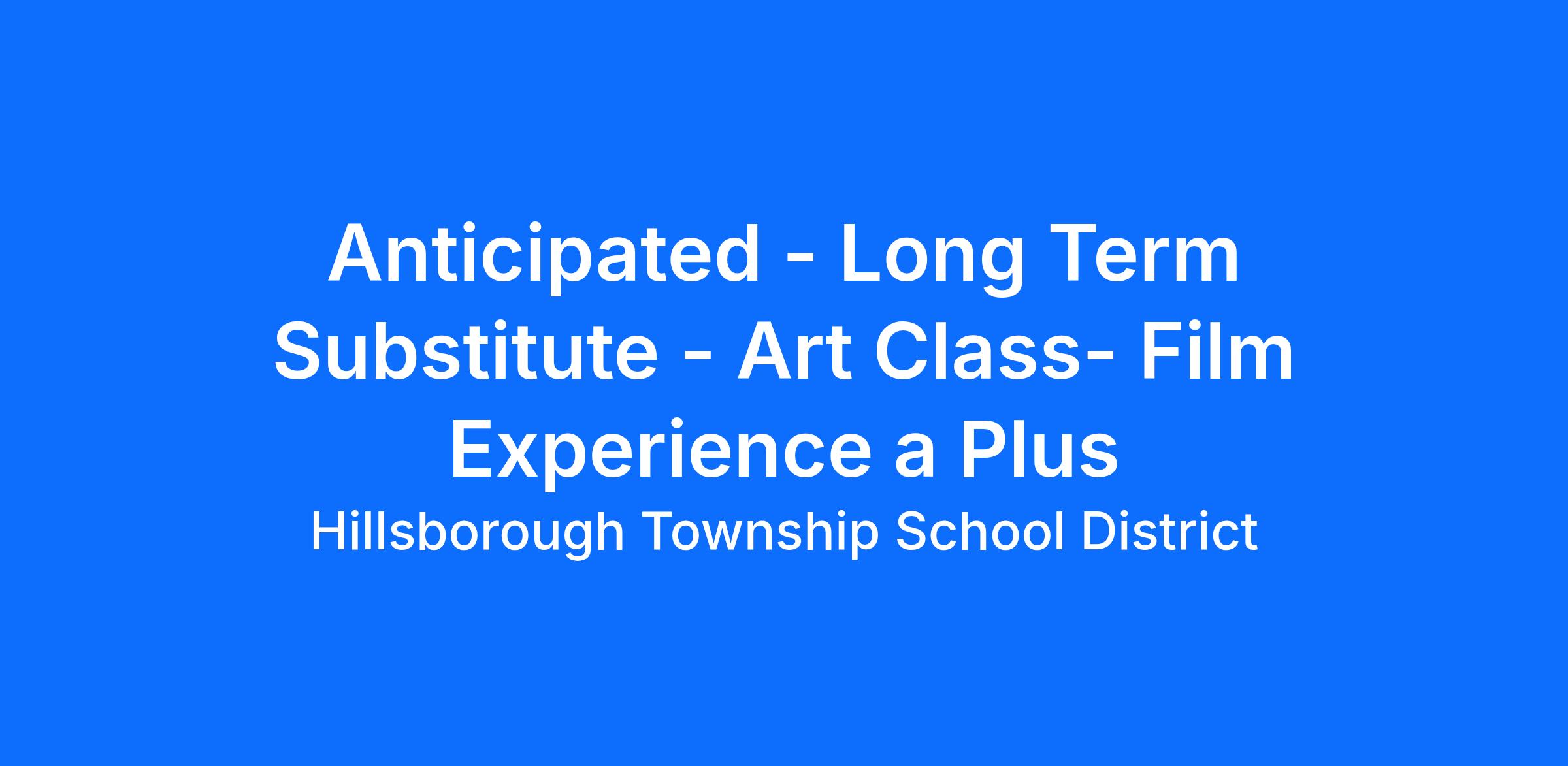 Anticipated - Long Term Substitute - Art Class- Film Experience a Plus