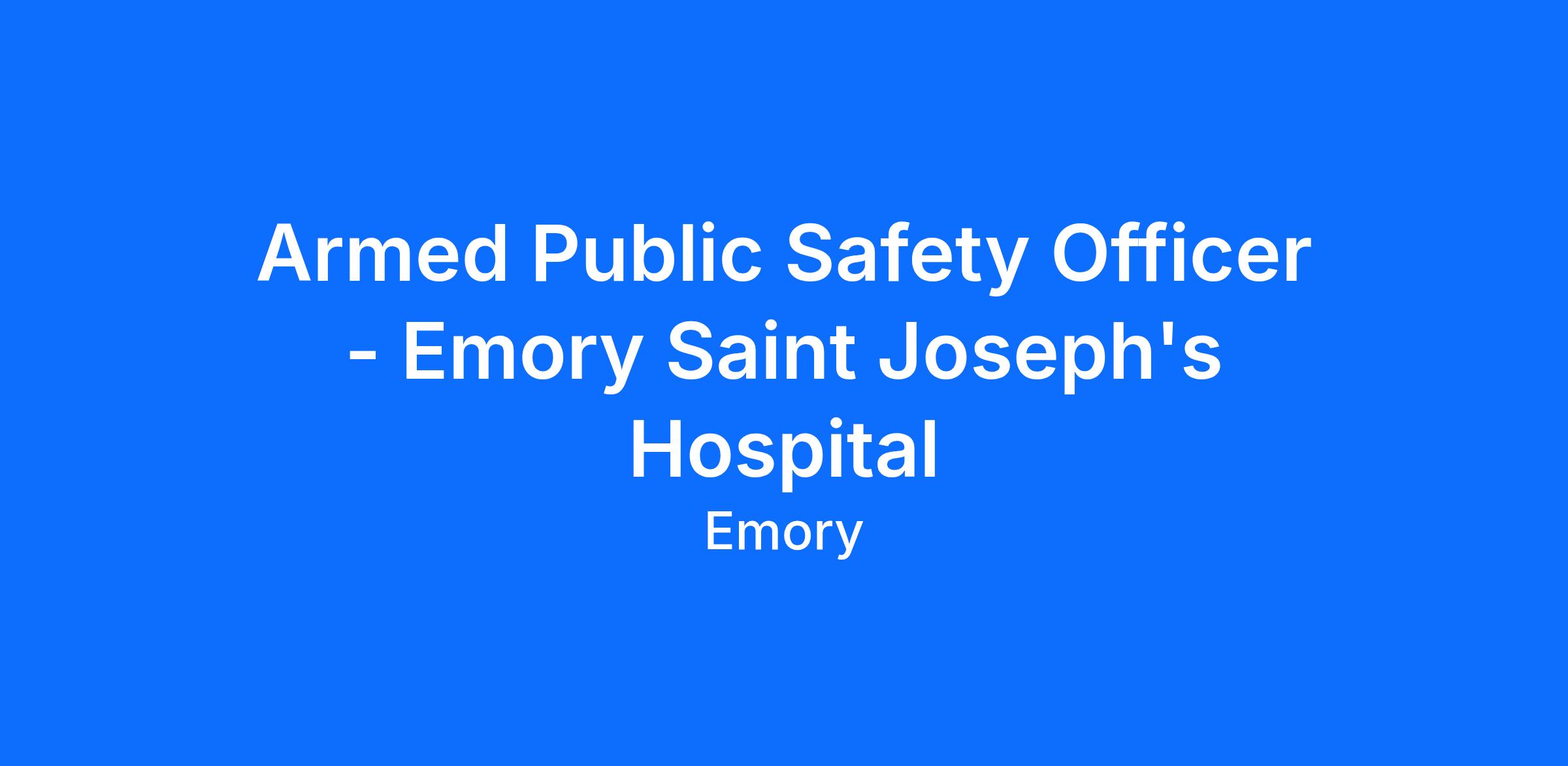 We are seeking an Armed Public Safety Officer to help keep our community safe. We support Emory Healthcare's mantra of "We're all in this together." Our goal is to offer Security Services worthy of premier healthcare. As such, we are committed to providing a safe environment for our patients, their families and guests, and our staff and neighbors. We offer value-enriched services such as friendly-approachable officers, valuables storing, access control, Identification badges and parking. Each service has been personally developed for the purpose of exceeding your service expectations. This individual will: