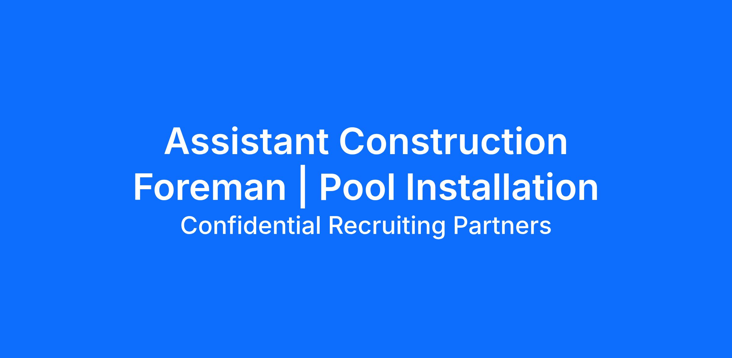 Our client is seeking an Assistant Foreman to support daily pool installation operations, help plan, organize, and execute residential installation projects. It's a hands‑on position ideal for someone with construction or installation experience who wants to grow into a leadership role.
