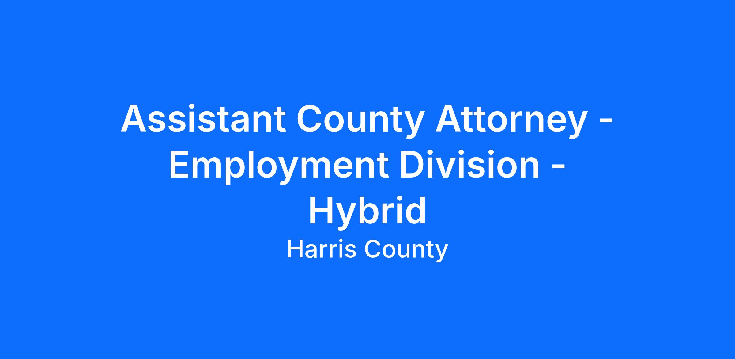 The Harris County Attorney's Office (HCAO) is hiring an attorney to join our Employment Division which provides full service in-house advice and counsel to County departments and elected offices related to all aspects of employment by the County, often in partnership with human resources professionals. In addition to a significant advice and counsel role, the Employment Division responds to litigation in state and federal court and represents the County and elected offices in agency investigations of employment matters, and administrative hearings. The attorney in this role will have the opportunity to refine their employment litigation skills from case inception through discovery and motion practice, trial, and appeal. The ideal candidate is a mid-level attorney or higher with prior experience in labor and employment counsel, as well as federal and state court litigation.