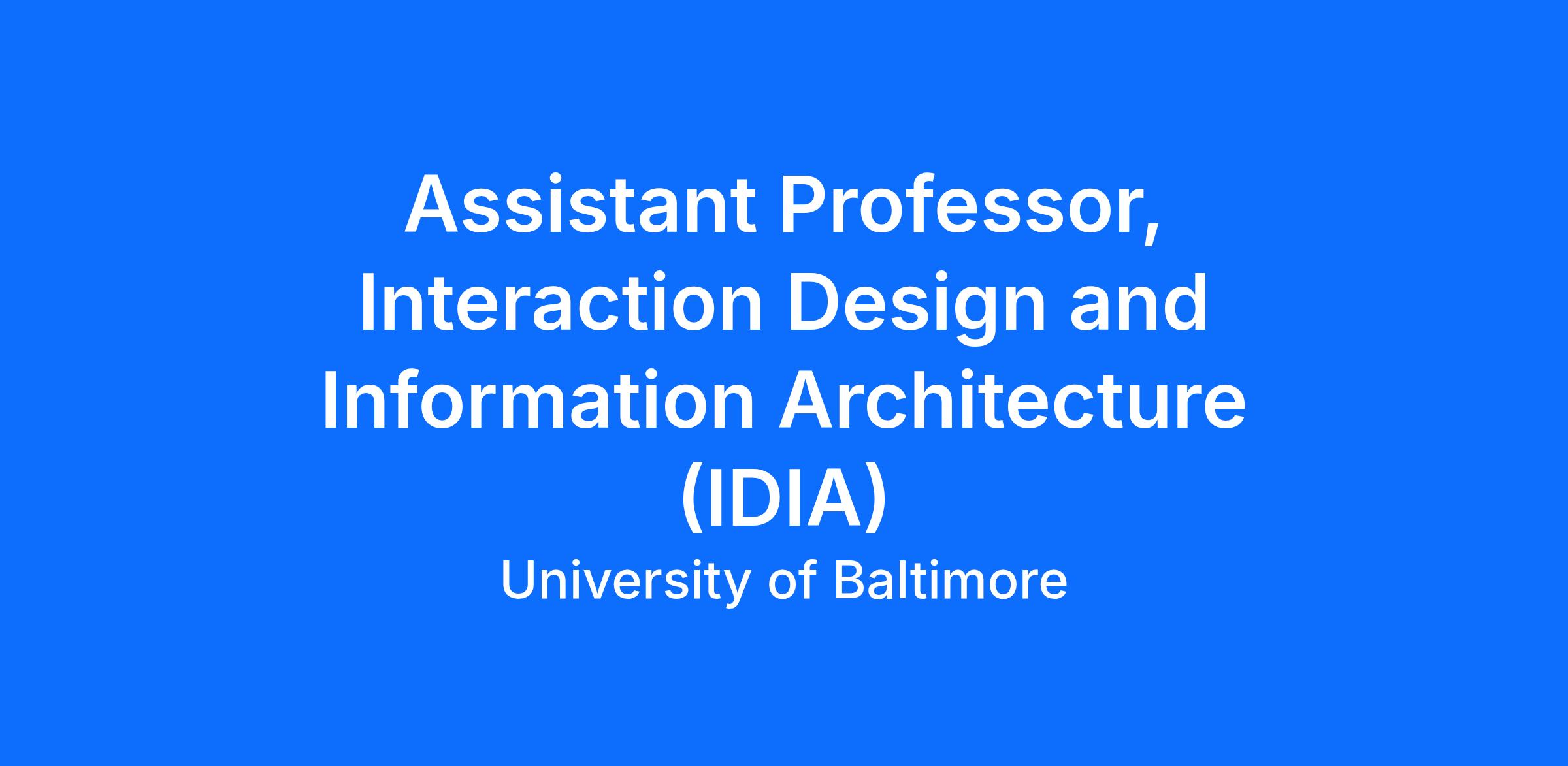 The Yale Gordon College of Arts and Sciences at the University of Baltimore invites applications for a faculty position in the Interaction Design and Information Architecture (IDIA) program to begin in August 2026. This tenure track role focuses on teaching and research in usable security and related human-computer interaction (HCI) topics. The position also includes oversight and leadership of the proposed Master of Science in User-Centered Cybersecurity, a program designed to address the growing demand for professionals skilled in creating secure and user-friendly digital environments.Responsibilities: