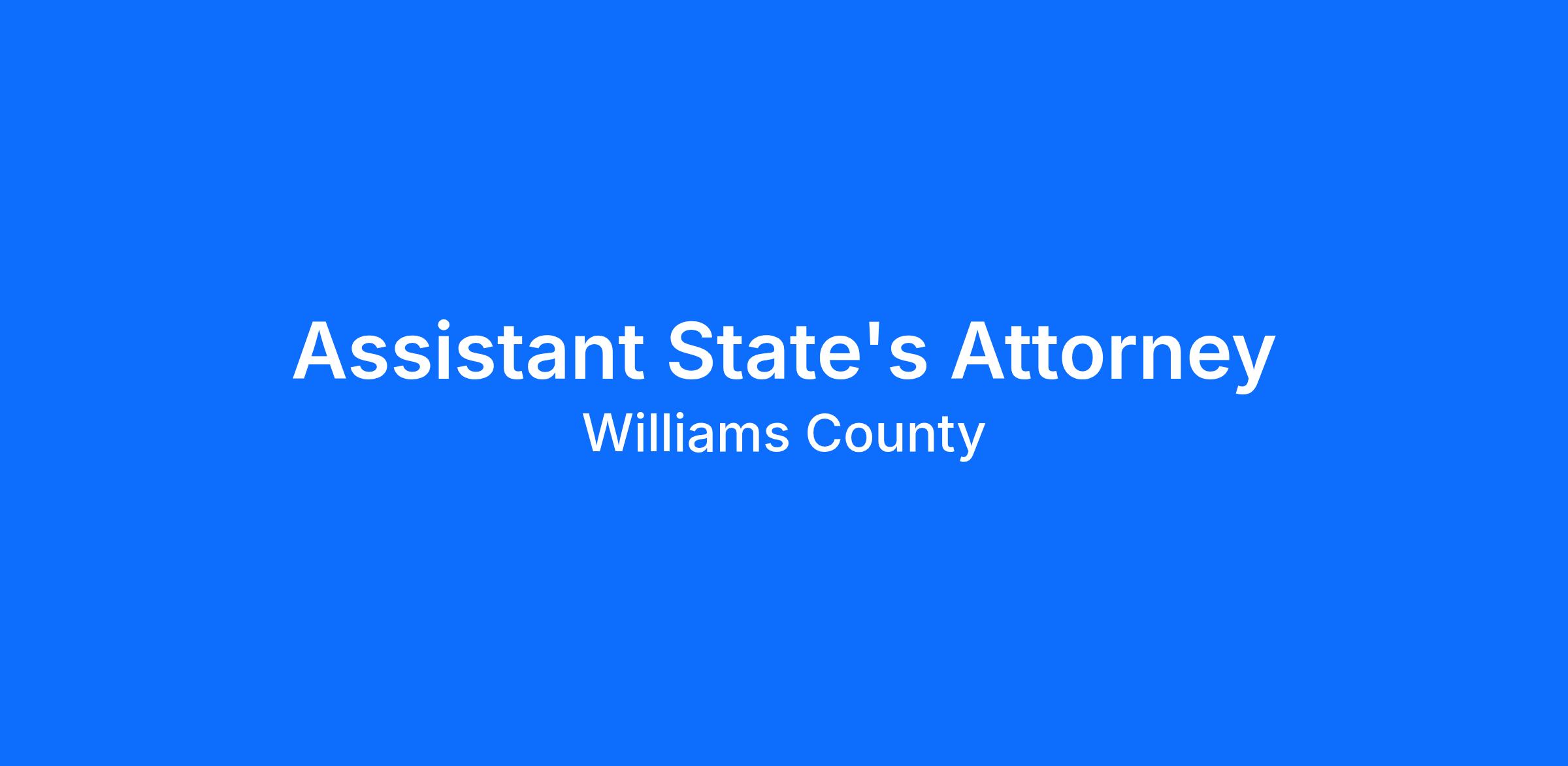 The Assistant State’s Attorney provides support to the State’s Attorney by prosecuting criminal offenses and providing legal representation to Williams County regarding civil matters.