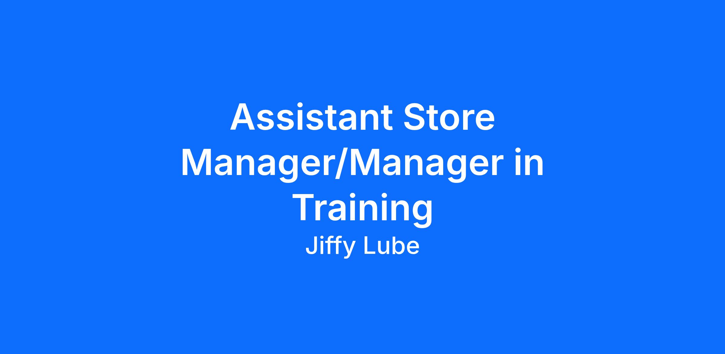 Jiffy Lube is a leading provider of automotive preventive maintenance with over 2,000 service centers nationwide. We are looking for a talented Automotive Assistant Store Manager/Manager in Training to join our team and contribute to our customer-driven focus on building strong relationships.