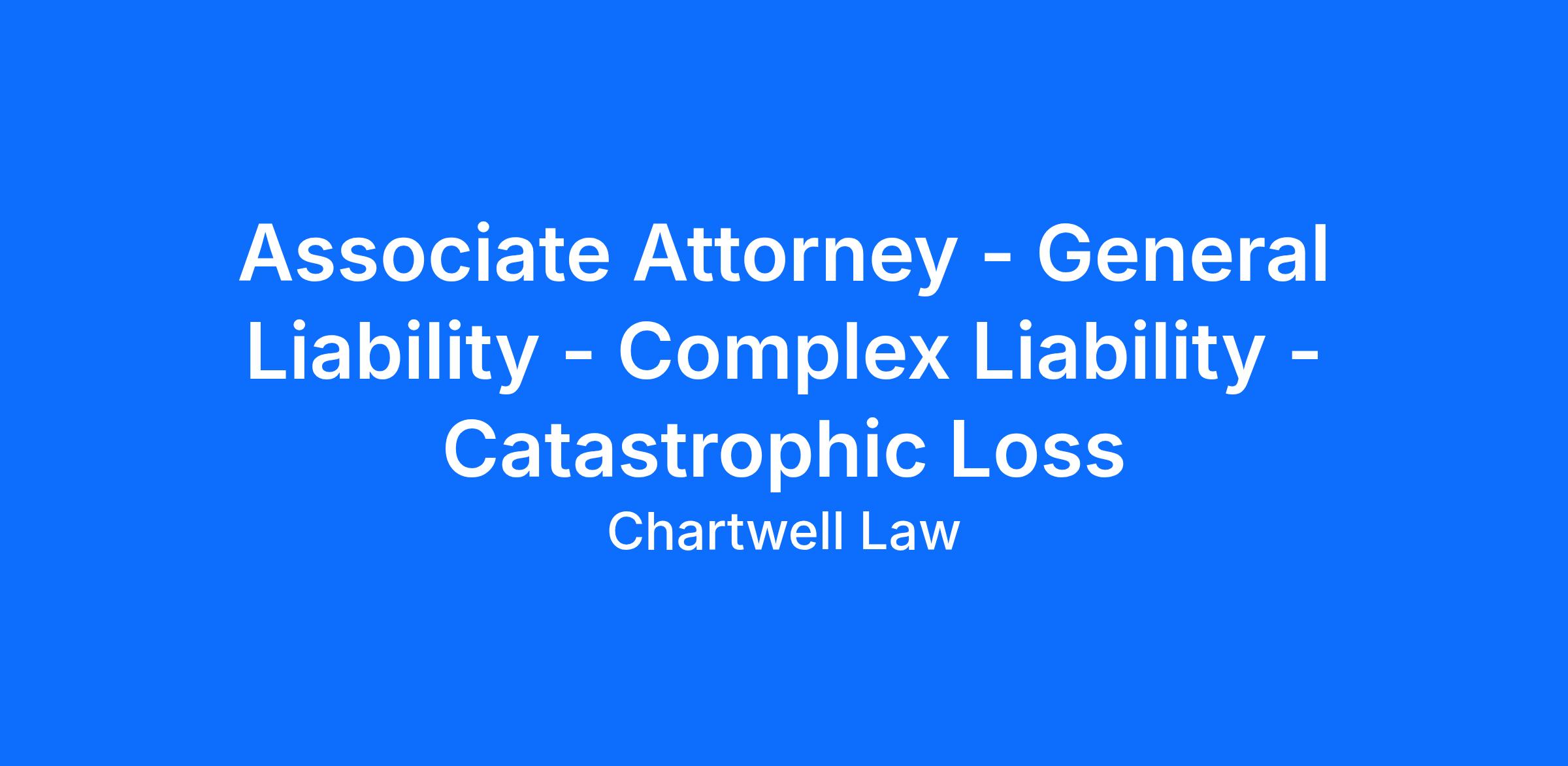 Associate Attorney - General Liability - Complex Liability - Catastrophic Loss