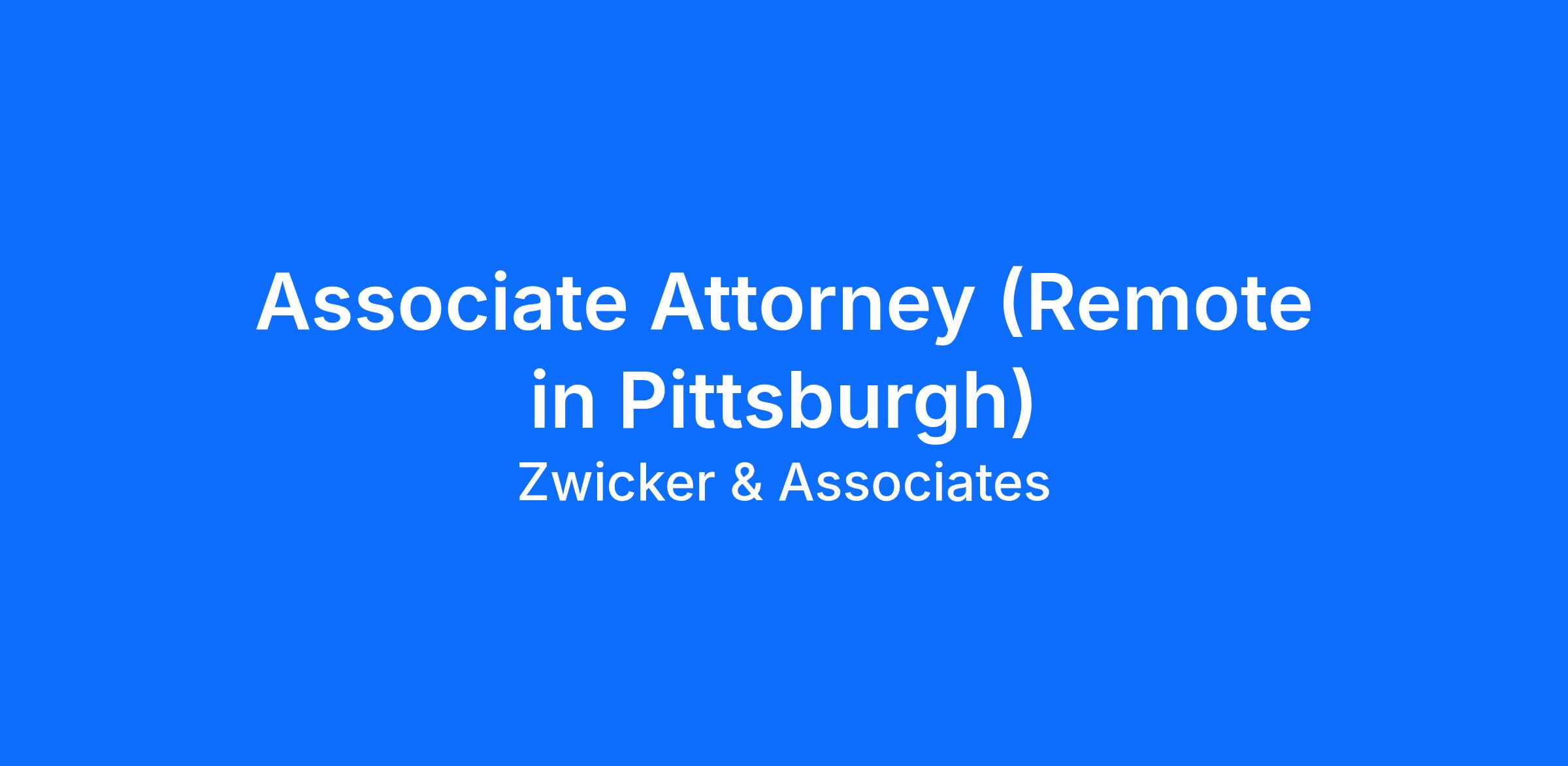 Zwicker is presently seeking an Associate Attorney to join our team in Pennsylvania. To be considered for the must live in Pittsburgh, PA to attend local hearings, but will otherwise work from home.