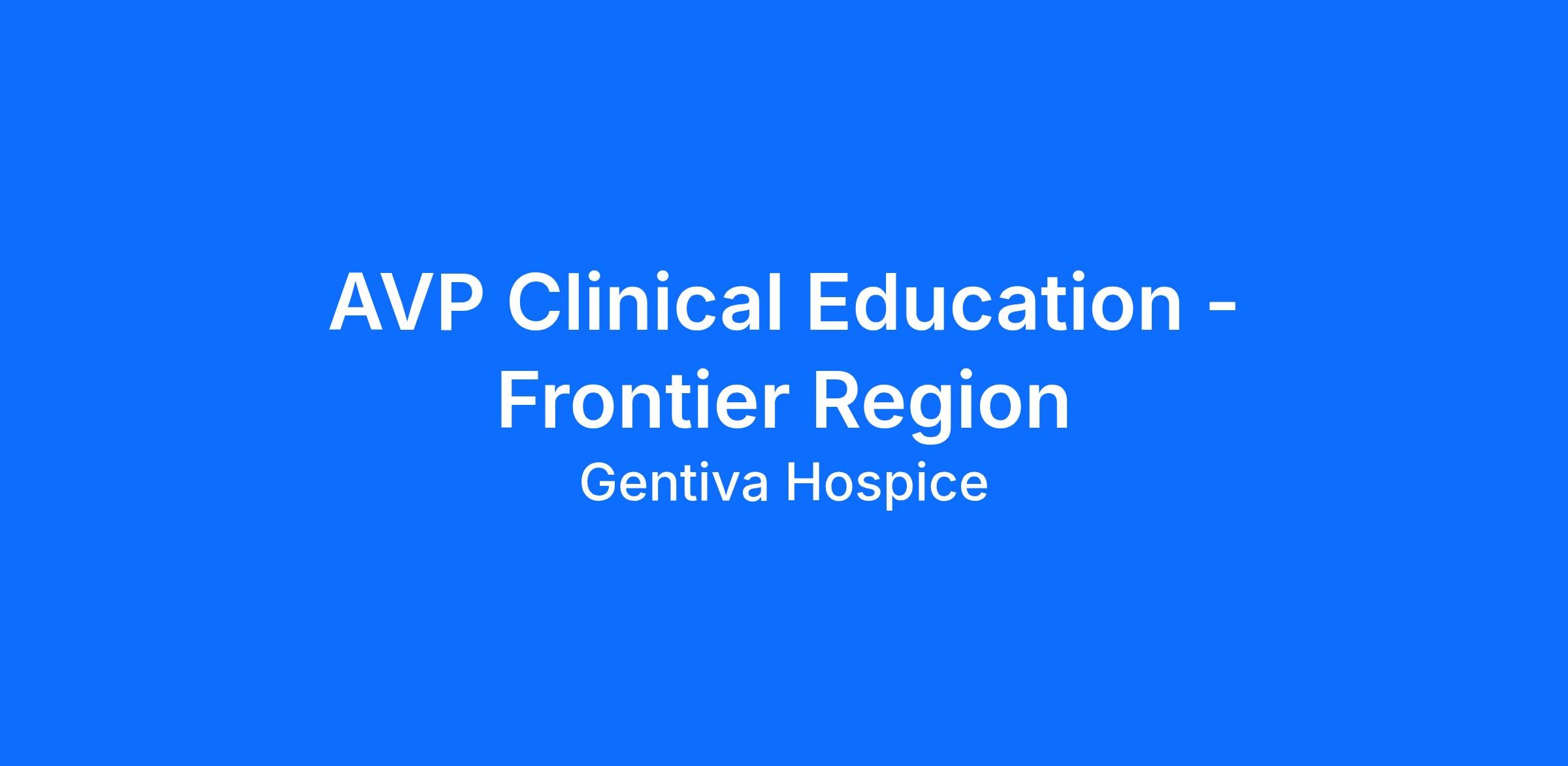 This is a newly created position at Gentiva Hospice designed to support regional operations. The AVP of Clinical Education will provide leadership for the Frontier Region.