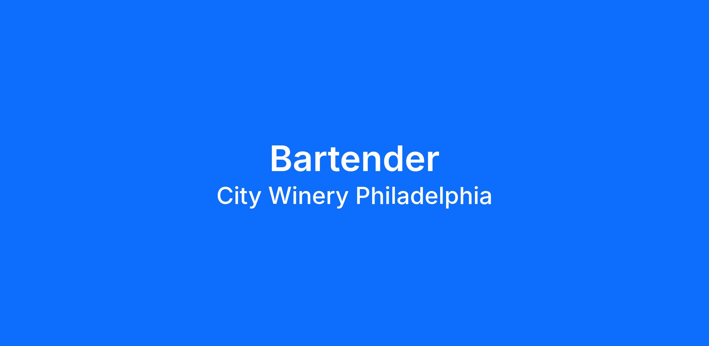 guests of City Winery. Duties include preparing and serving alcoholic and