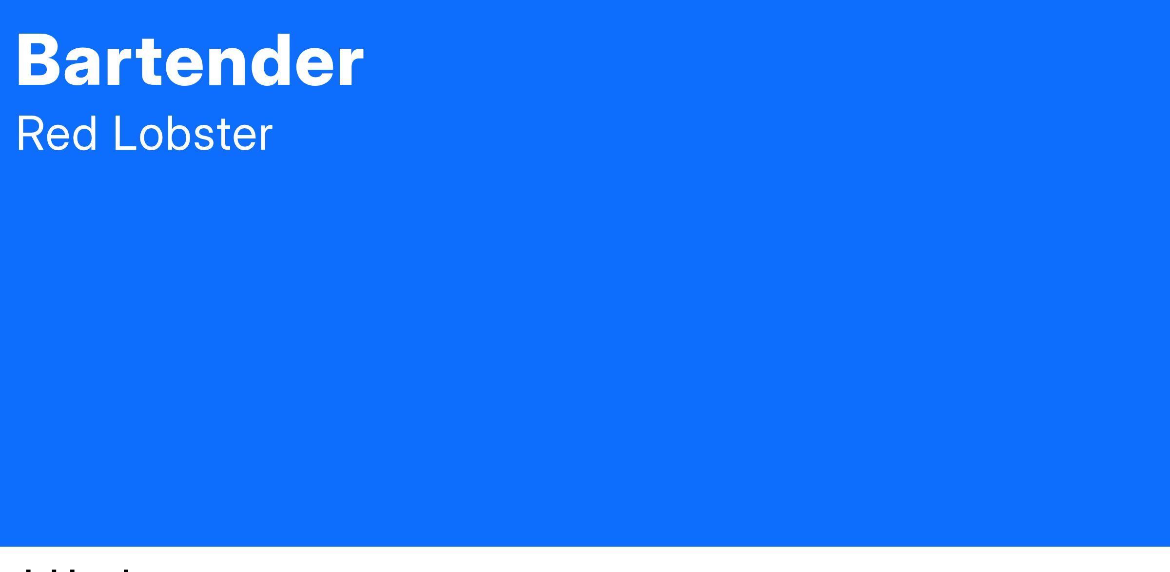 Your responsibilities as a Bartender will include, but are not limited to: