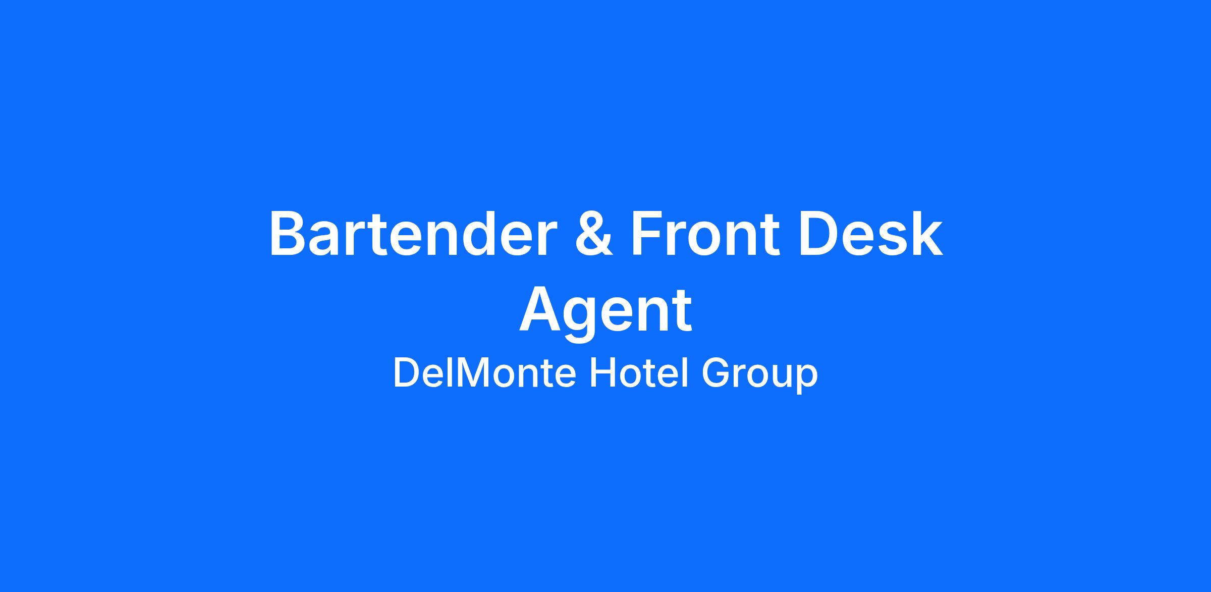 Are you ready to apply your expertise to a rewarding career with a leader in the hospitality industry? Join the DelMonte Hotel Group team! We are currently seeking experienced and driven candidates just like you to serve as a Bartender/Front Desk Clerk.