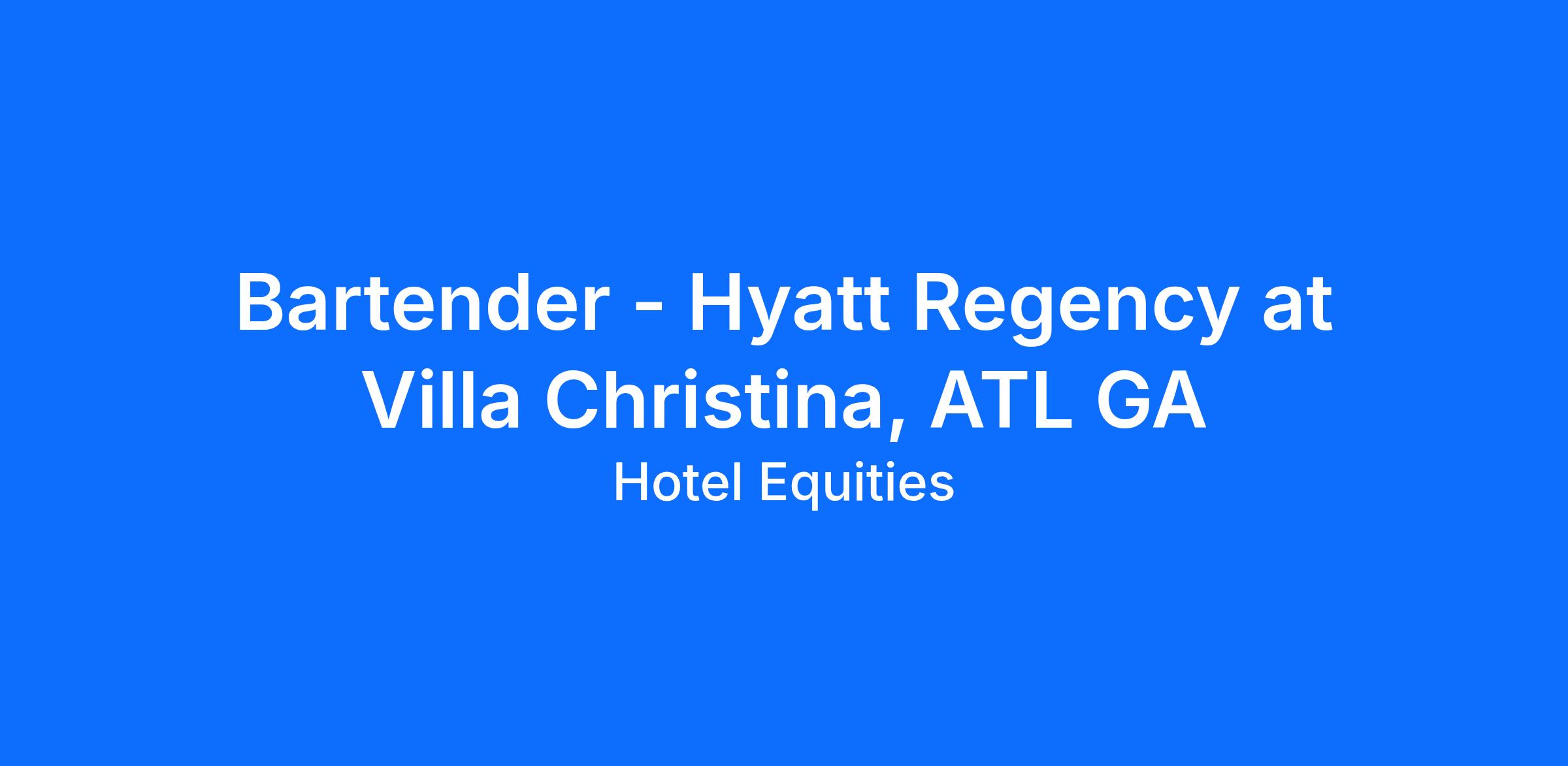 Hotel Equities, a multi-award-winning hotel development and hospitality management company, is currently searching for a remarkable Bartender for the Hyatt Regency at Villa Christina, Atlanta, GA.