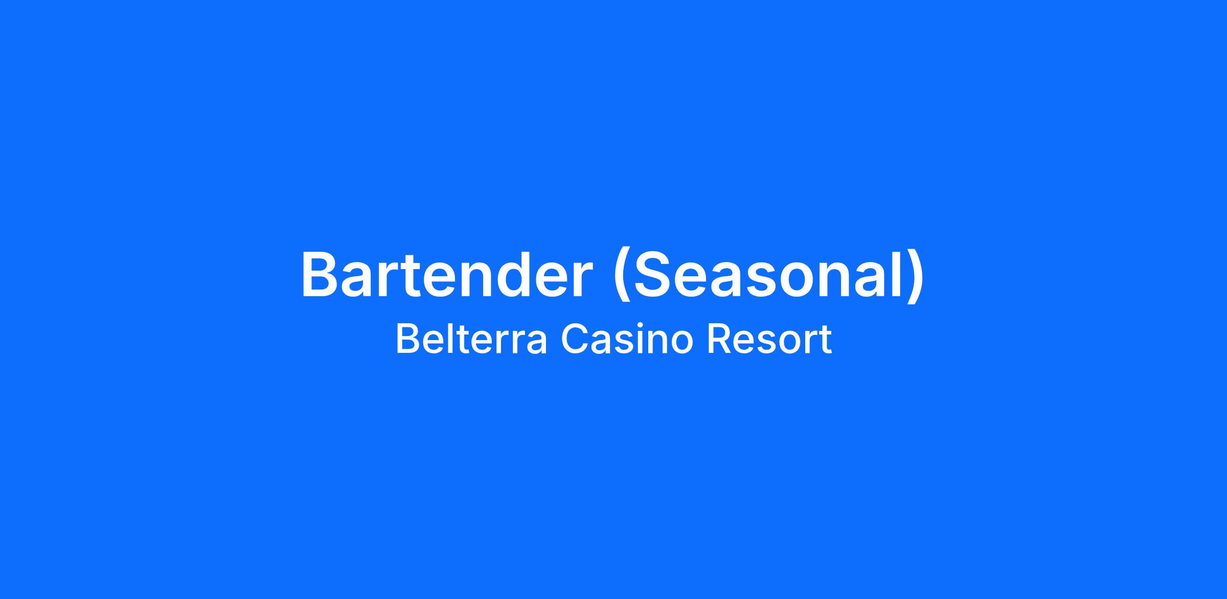 The Out of Bounds Bartender is responsible for providing superior service to both the internal and external customer. The position is also responsible for providing beverage service to Belterra Casino Resort guests and cocktail servers while providing excellent customer relations.