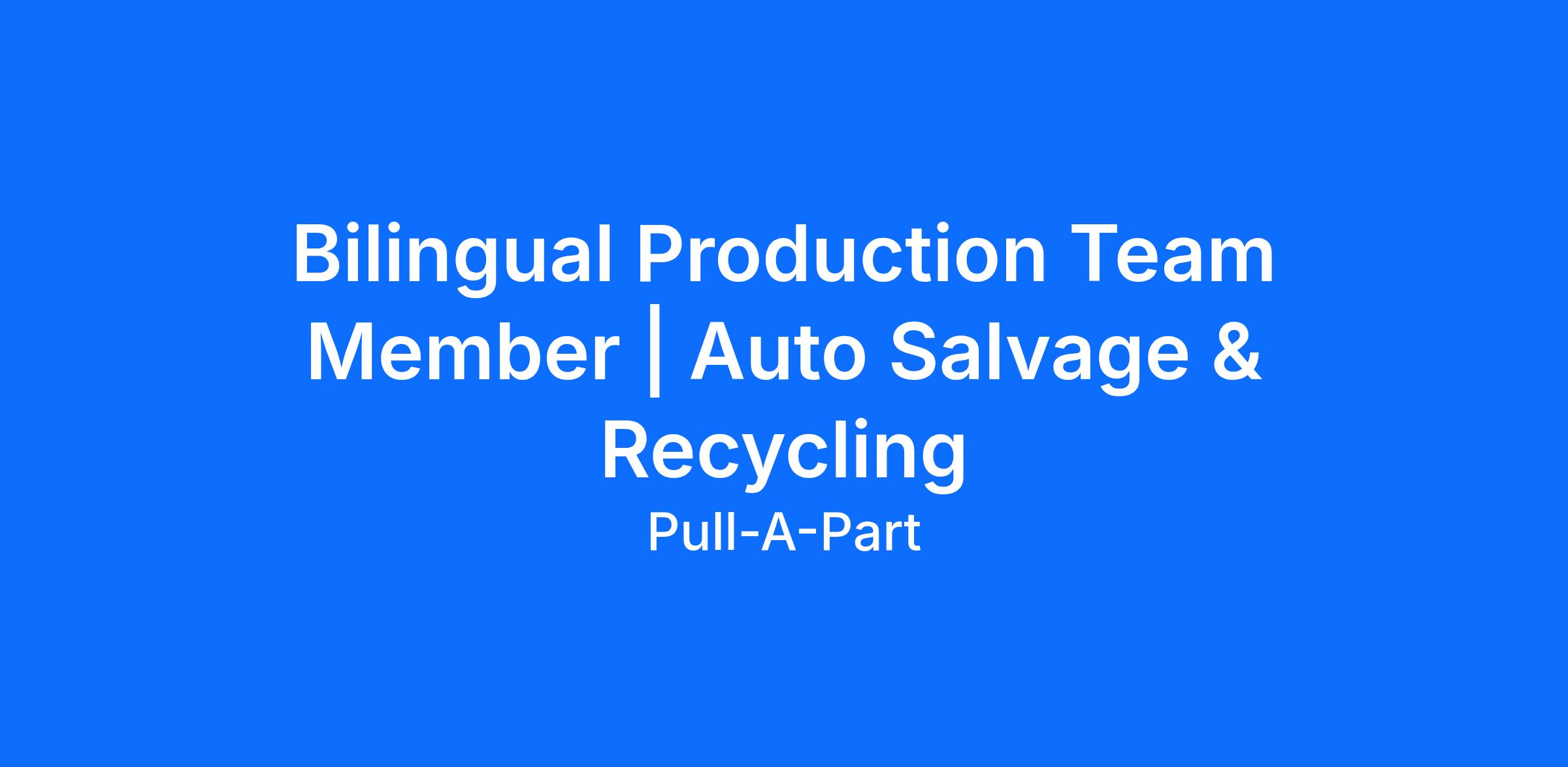 As a Bilingual Production Team Member, you’ll work on-site at one of our store locations helping to safely process vehicles, maintain equipment, and support daily production operations in an outdoor industrial environment.