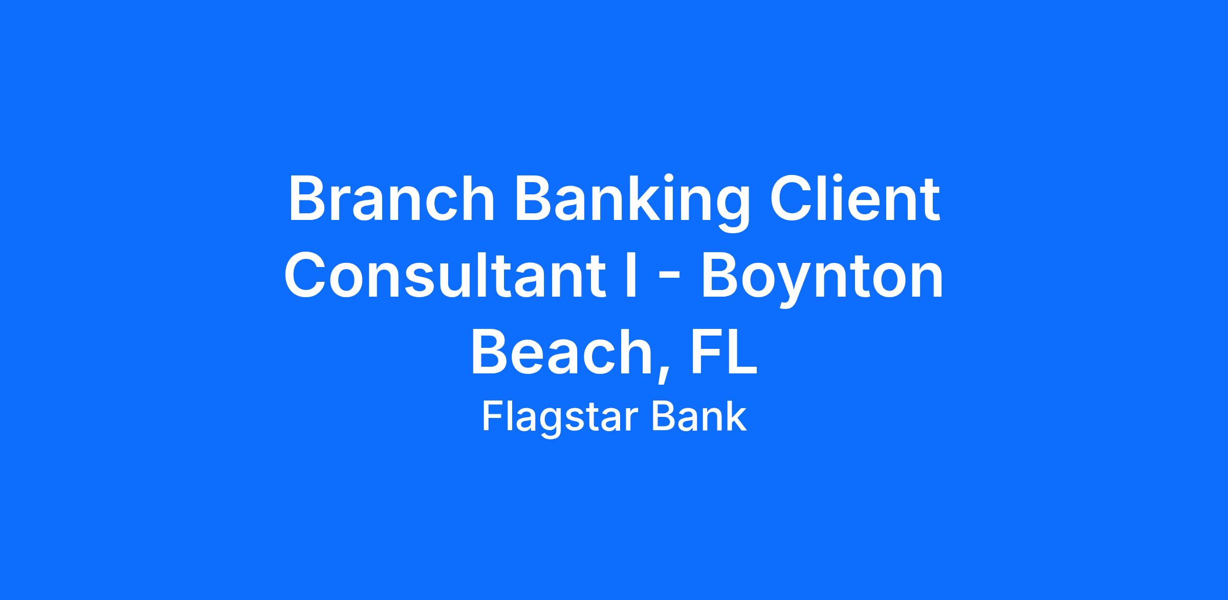 Branch Banking Client Consultant I - Boynton Beach, FL
