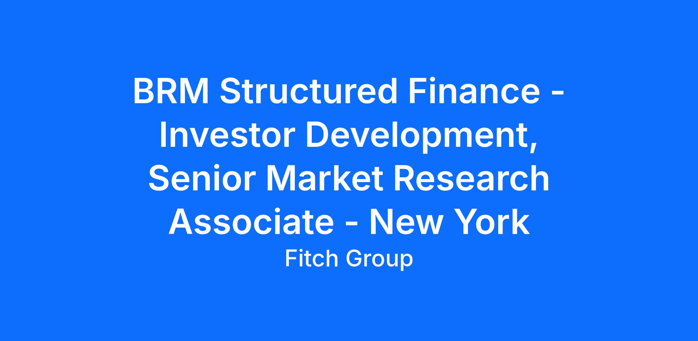 Fitch Ratings is currently seeking a Senior Market Research Associate to join its BRM Structured Finance - Investor Development group based out of our New York office.