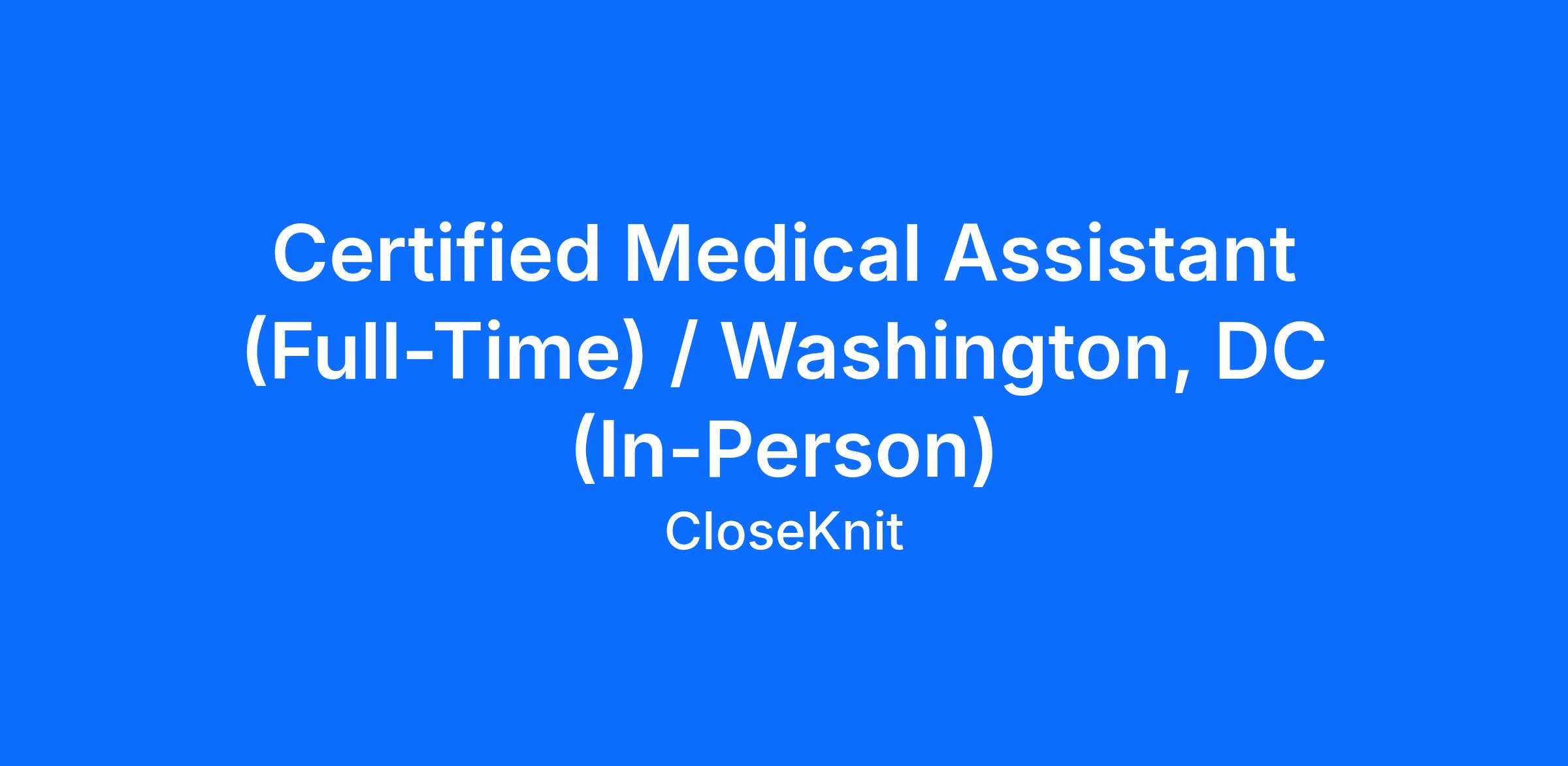 Certified Medical Assistant (Full-Time) / Washington, DC (In-Person)