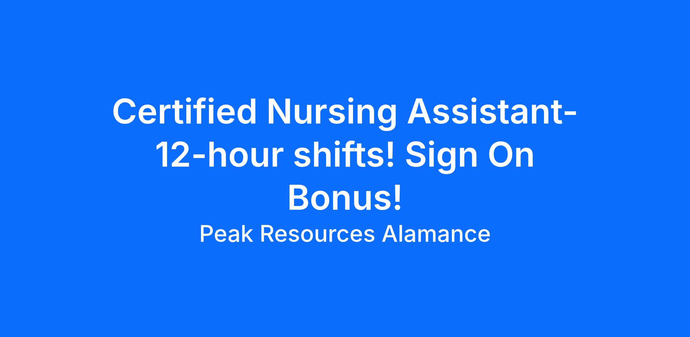 We are currently seeking qualified Certified Nursing Assistants - C.N.A - to join our team at Peak Resources Alamance! Beautiful Facility! Deficiency Free State Survey!