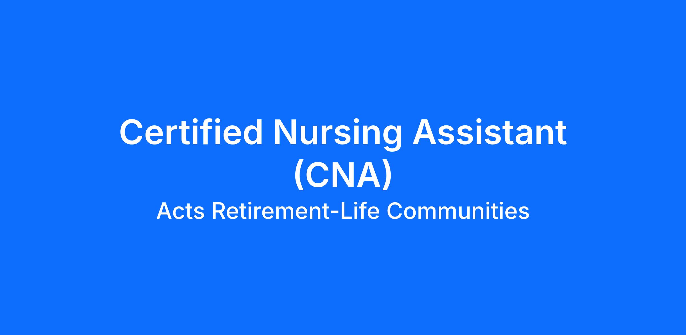 Acts is currently seeking qualified candidates for the role of Certified Nursing Assistant (CNA) in our skilled nursing neighborhood.