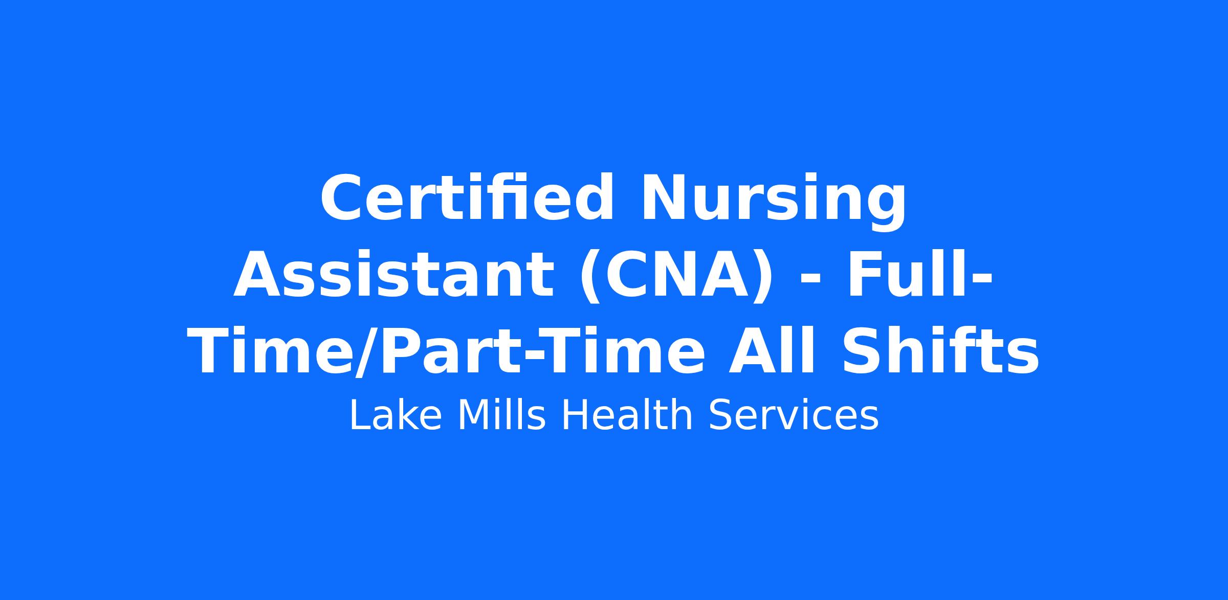 Certified Nursing Assistant (CNA) - Full-Time/Part-Time All Shifts