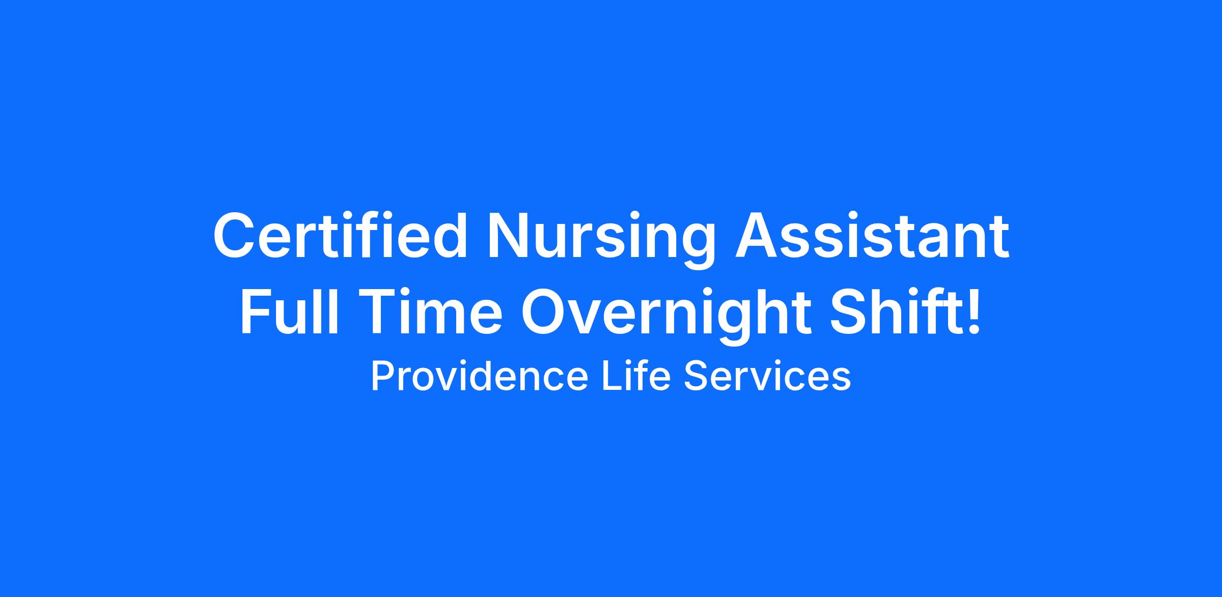 Victorian Village, a Skilled Nursing Community, located in Homer Glen, IL is seeking Certified Nursing Assistant (CNA) for Full Time on Overnight Shift! Victorian Village is a member of the Providence Life Services family where we are committed to enhancing the lives of those we serve! Add $2/hour differential to hourly pay rate for Overnight Shift!