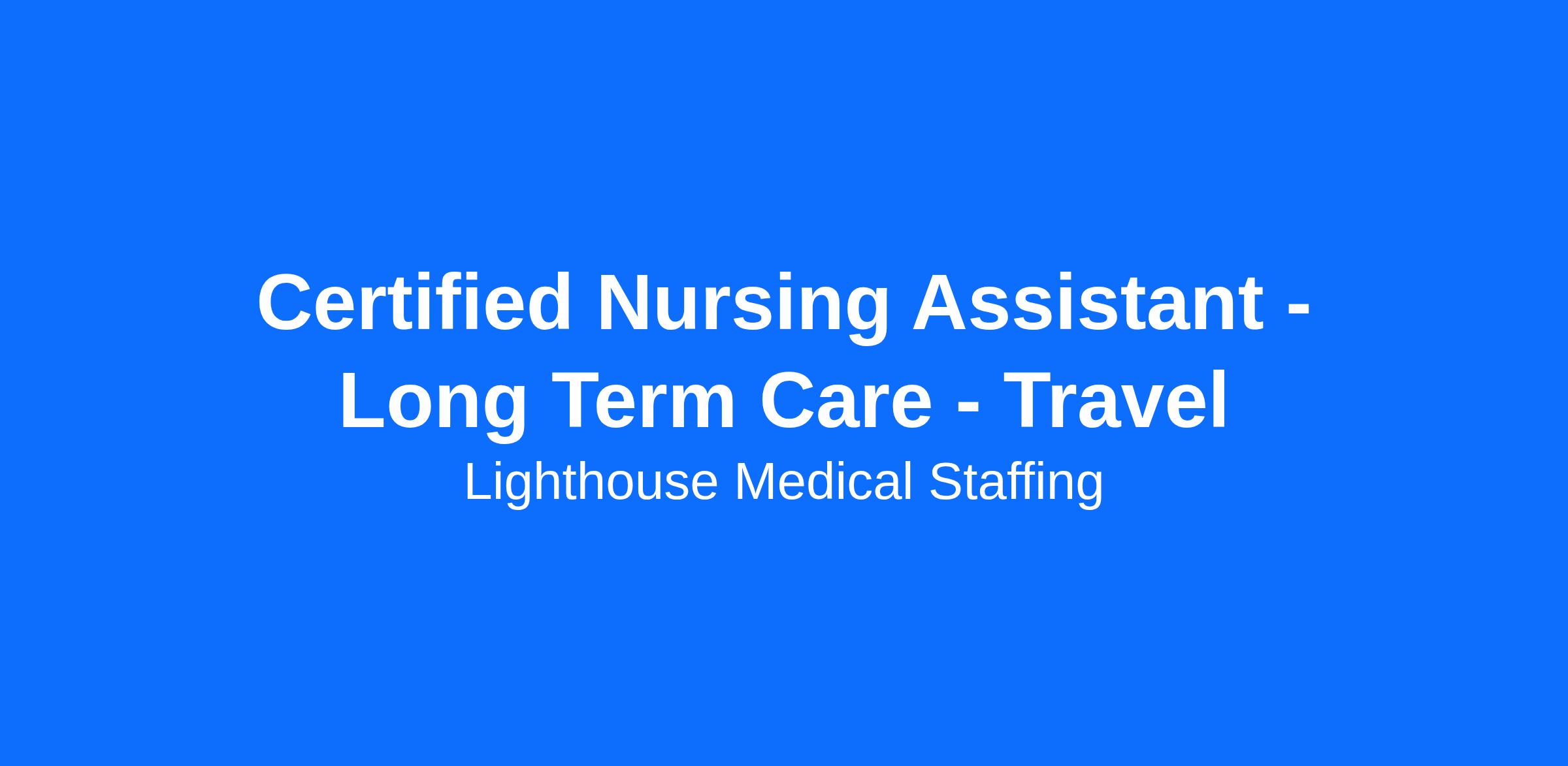 If you are a qualified Certified Nursing Assistant and looking for an exciting contract position with competitive compensation and benefits packages, apply today!