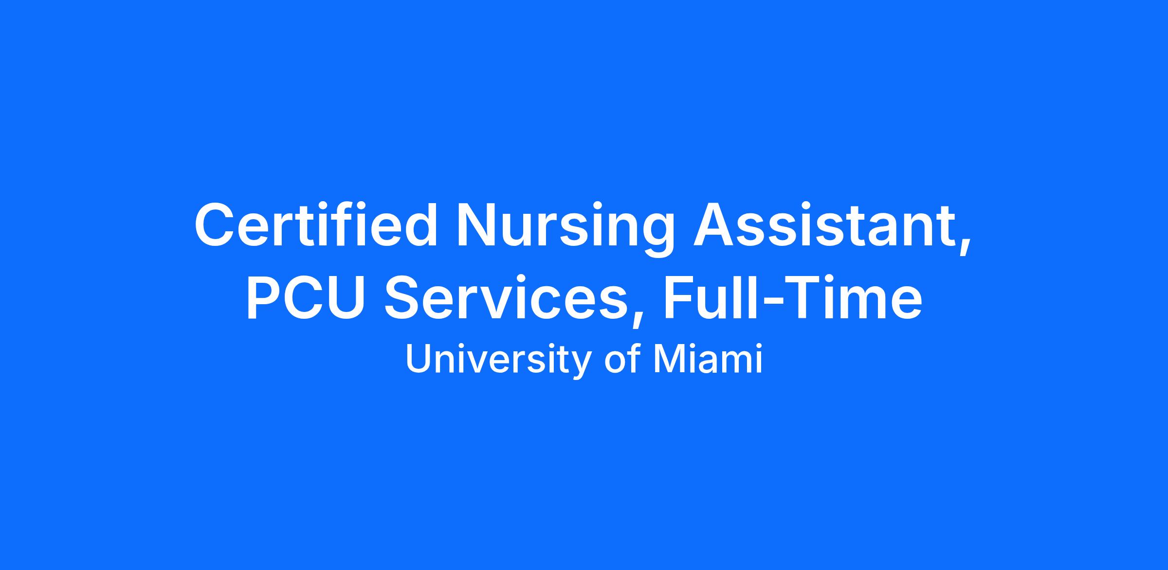 Work Location: University of Miami Hospital UTower - Nursing 7 South Progressive Care Unit (PCU)