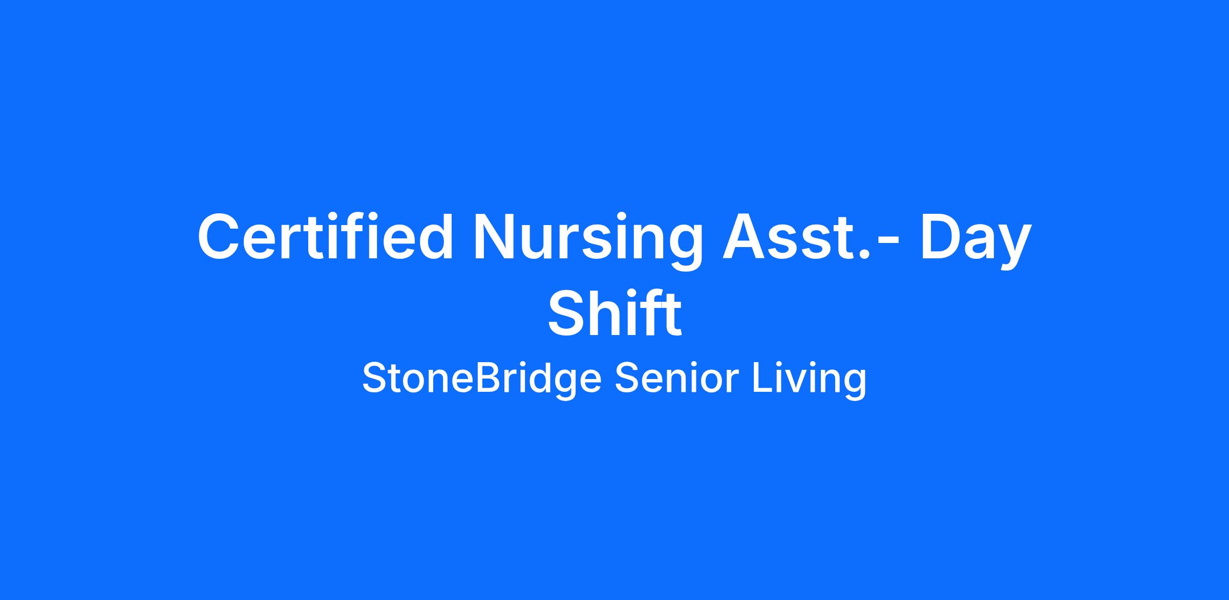 A Certified Nursing Assistant is responsible for supporting medical staff in administering care to residents with various injuries, illnesses or disabilities. The position requires patience, compassion, and a desire to care for the elderly in a gentle and empathetic manner.