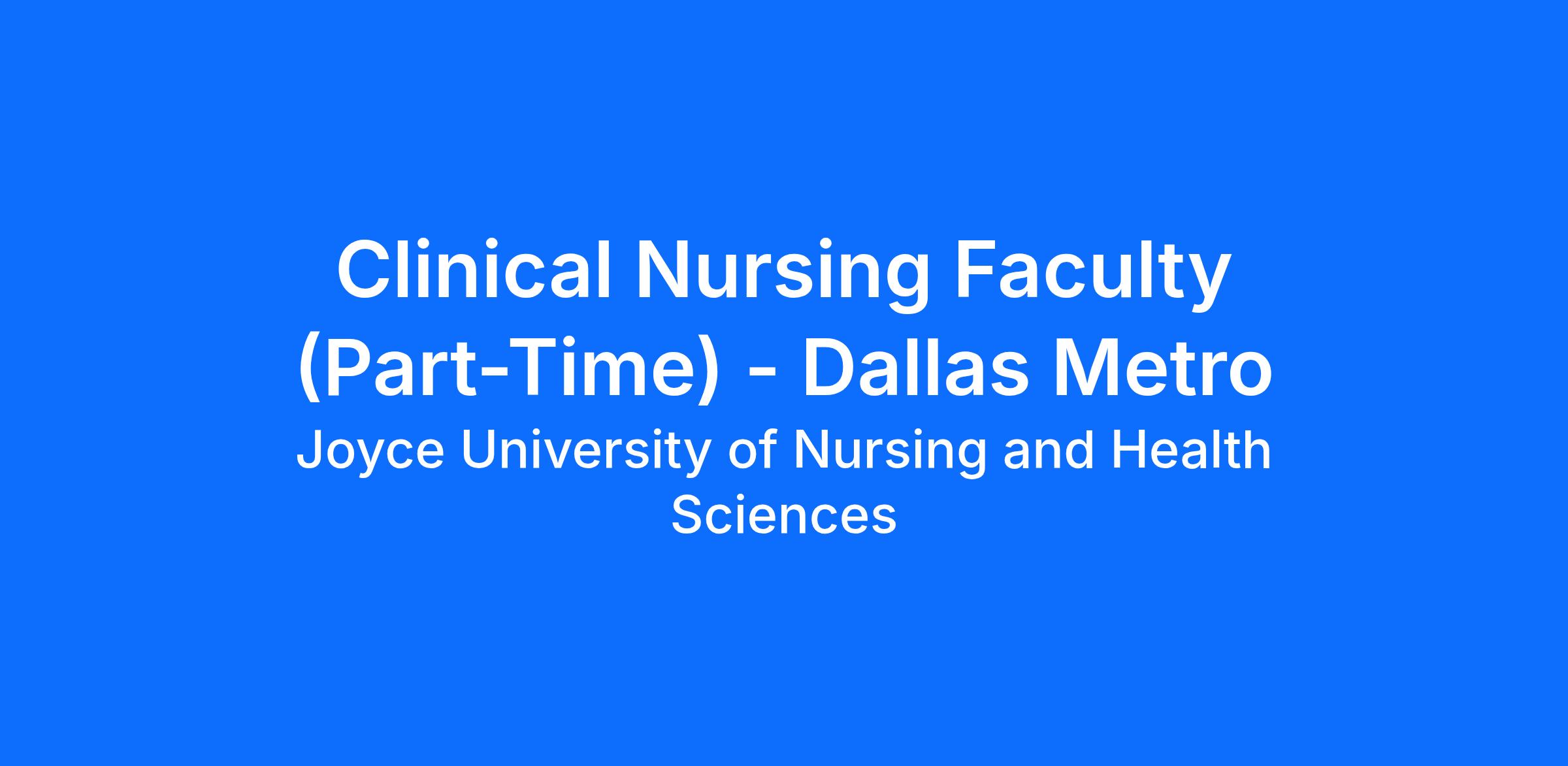 Shape the Future of Nursing — Join Joyce University as a Part-Time Clinical Nursing Faculty Member in the Dallas Metro Area!