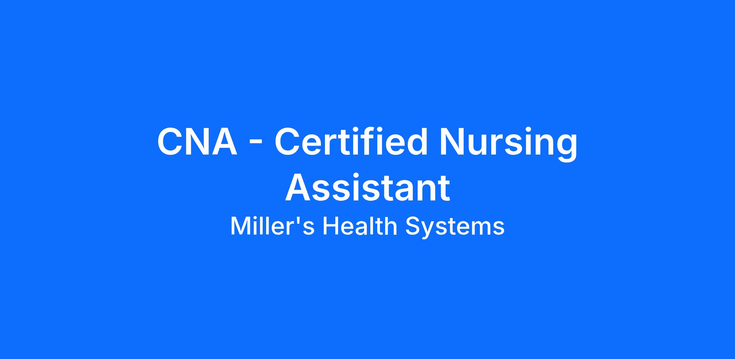 Are you friendly, passionate about serving others, and want a job where you can make a difference each day? If this sounds like you, then becoming a Certified Nurses Aide (CNA) at Miller’s Health Systems might be right the right step for you!