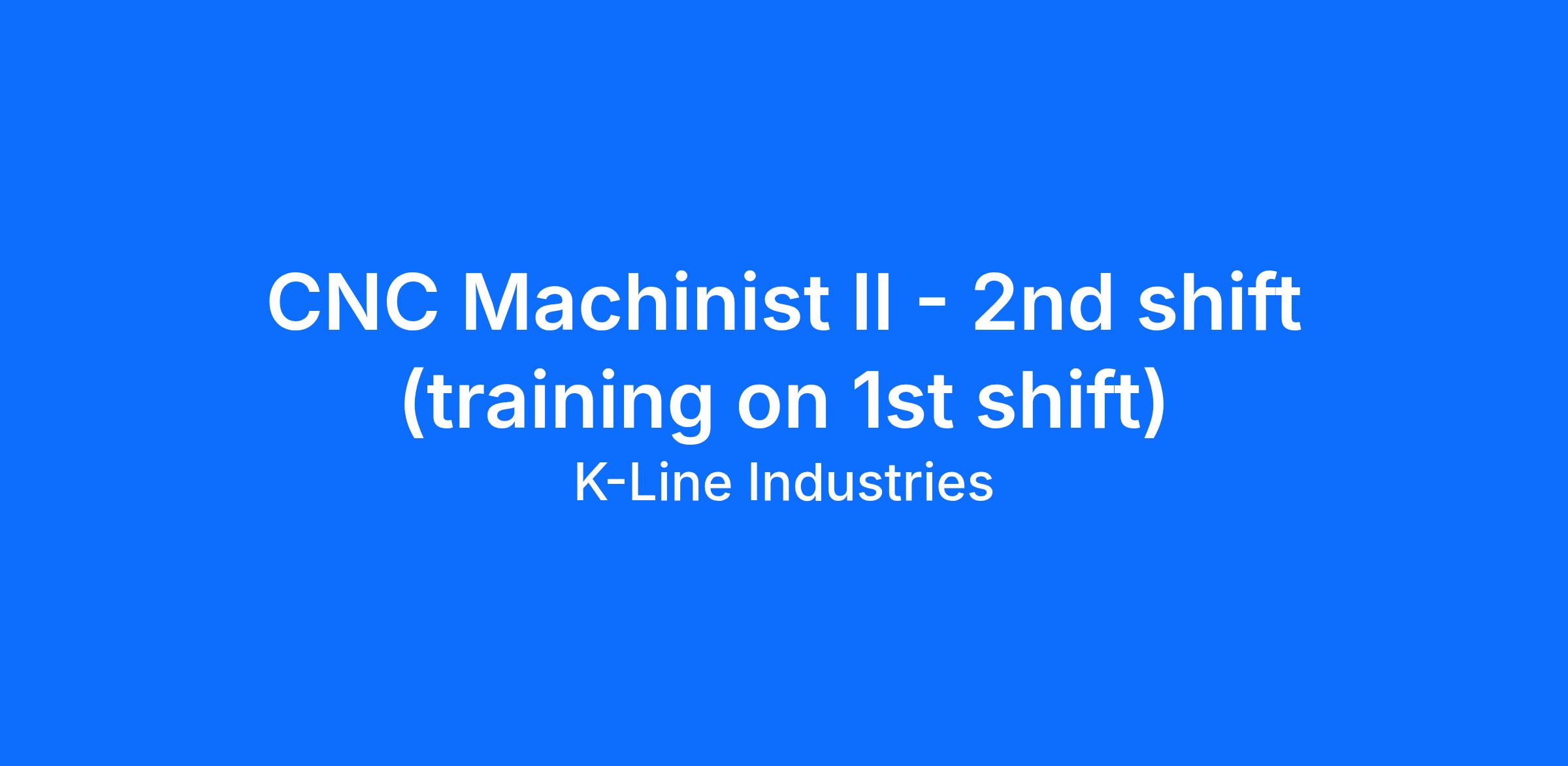 The CNC machinist operates computer numerical control machines to fabricate parts. The CNC machinist performs set up tasks, loads parts in the machine, cycles machine and detects malfunctions in machine operations, such as worn or damaged cutting tools. The position runs production lots, communicates with co-workers regarding productions runs, and maintains a safe, organized and clean work environment.