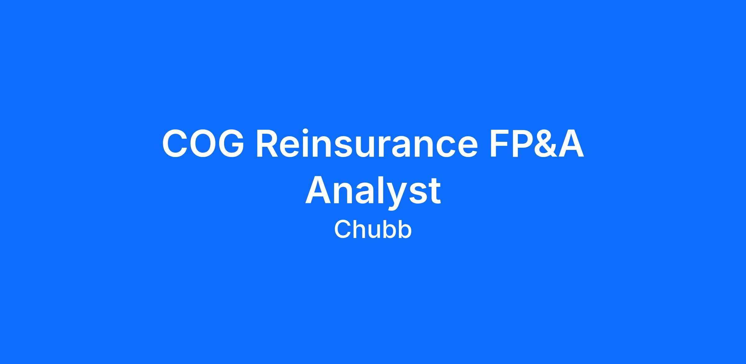 The COG Reinsurance FP&A Analyst supports the financial planning and analysis activities for Chubb’s overseas reinsurance business, reporting directly to the COG Reinsurance FP&A Leader. This role will work closely with cross-functional teams to prepare key reinsurance FP&A deliverables and provide meaningful reports and analysis to Senior Management in support of decision making. The ideal candidate is a proactive and data-oriented finance professional with an analytical mindset that can act bridge between Reinsurance, IT, Finance, and business stakeholders.