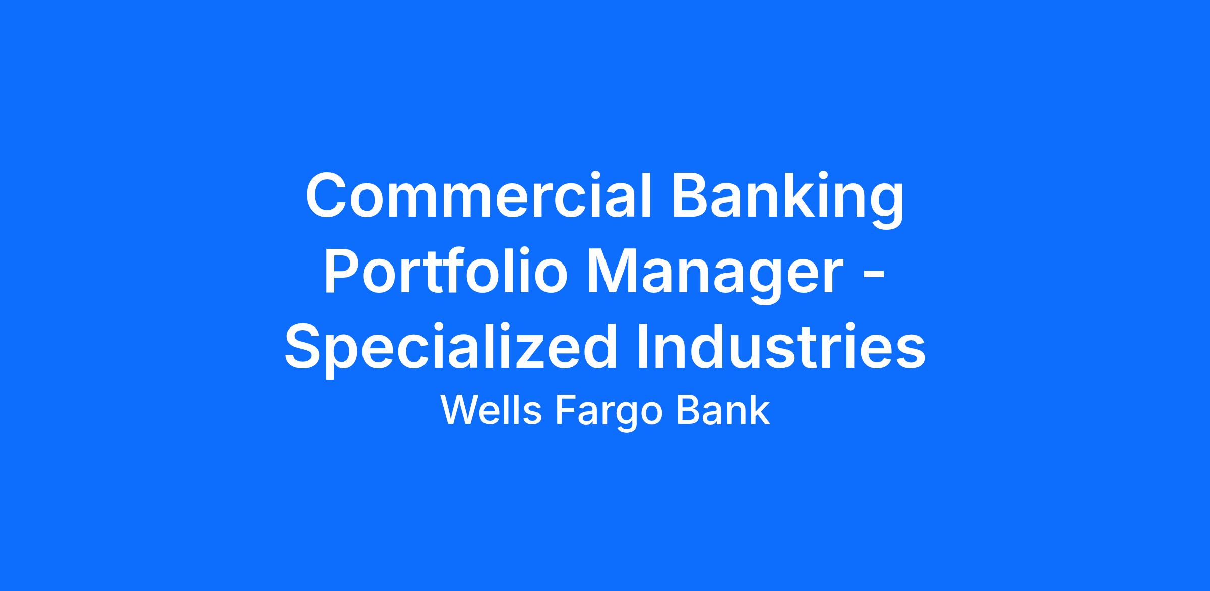 Wells Fargo is seeking a Commercial Banking Portfolio Manager for clients with annual revenue of $100MM to $2B as part of the Specialized Industries group within Commercial Banking. Learn more about the career areas and business divisions at wellsfargojobs.com. #CommercialBanking