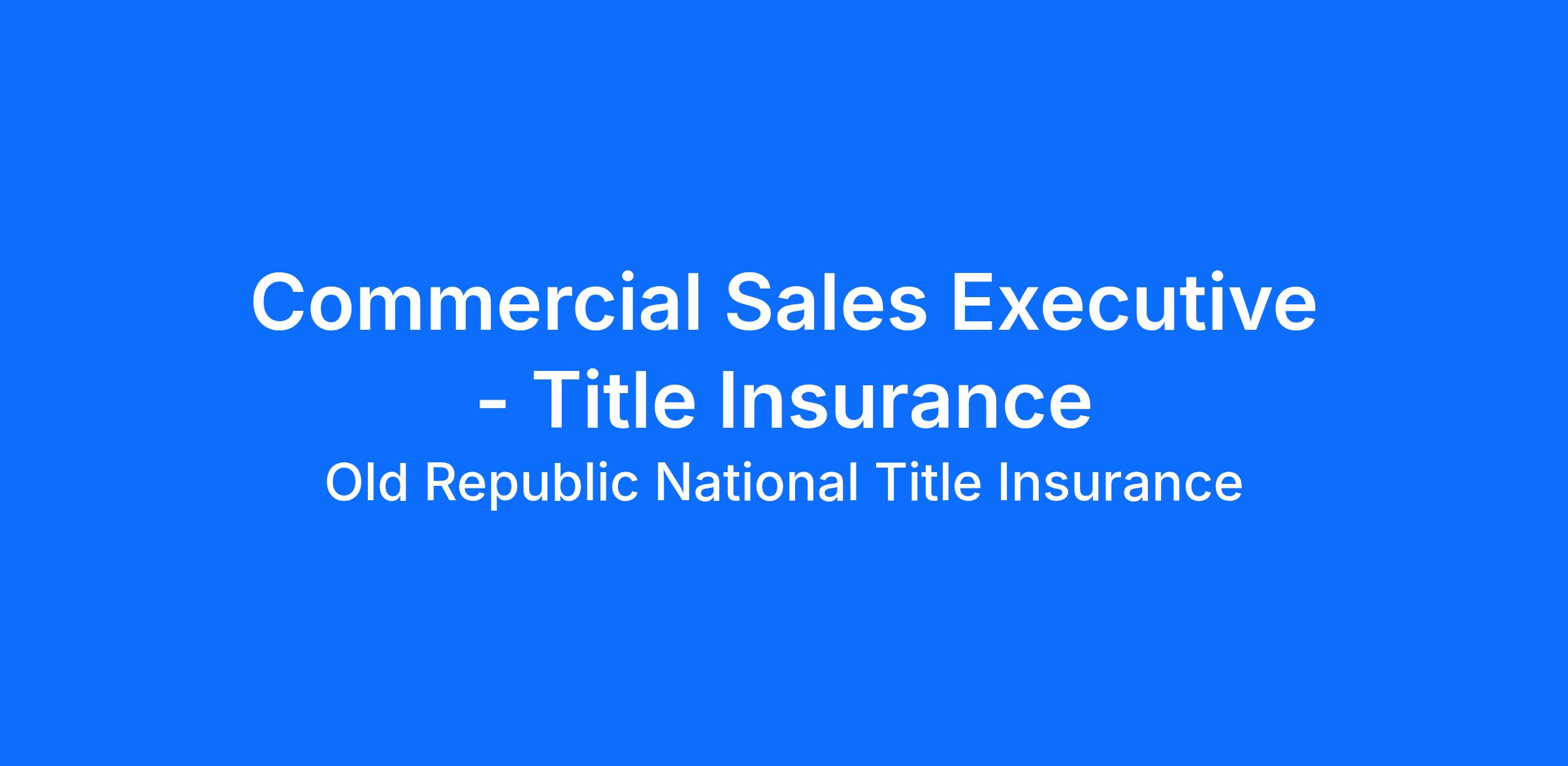 Old Republic Title is a leader of title and escrow services, dedicated to facilitating real estate transactions with the highest level of customer service. With over 118 years of history and a commitment to excellence, we are seeking a dynamic and results driven Commercial Sales Executive to join our team.