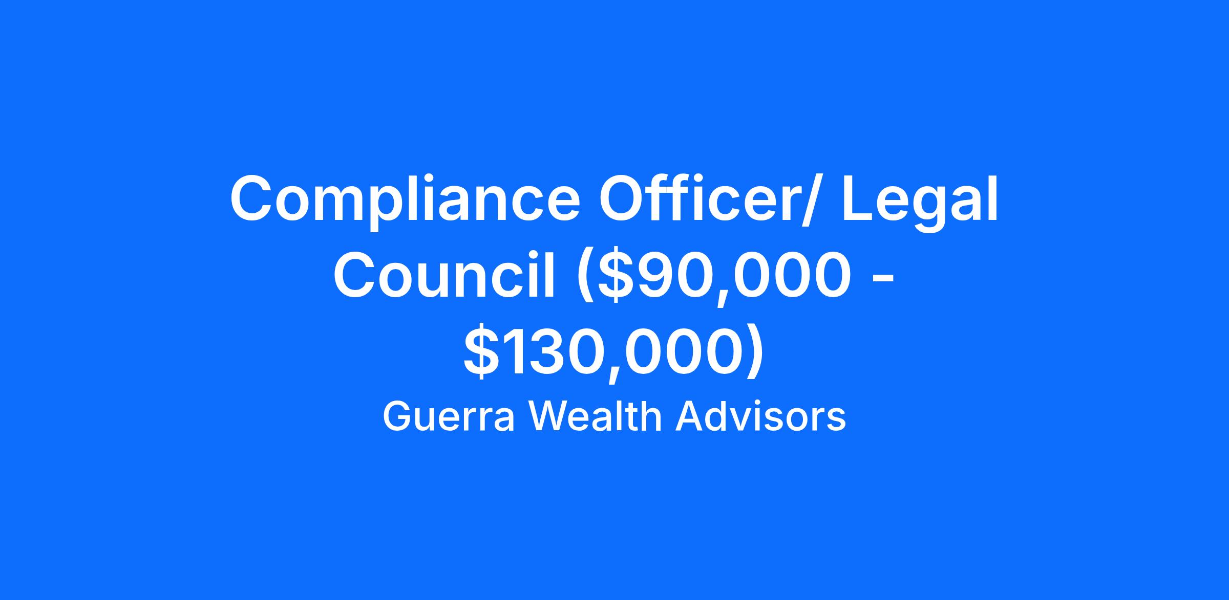 The Compliance Officer/ Legal Council is the regulatory guardian and strategic partner ensuring Guerra Wealth Advisors operates with unwavering integrity and full regulatory compliance. You'll oversee all compliance functions for our RIA, manage regulatory relationships, and create a culture of ethical excellence across the firm.
