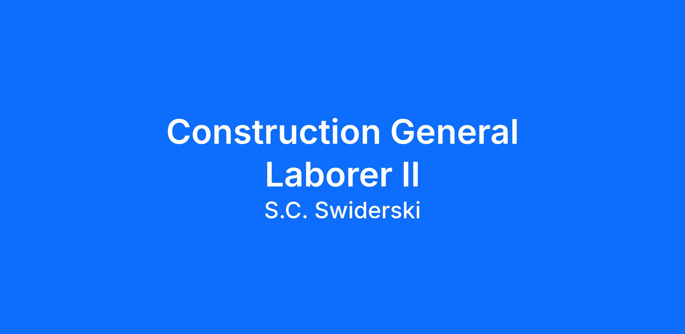 The General Laborer II supports SC Swiderski’s field construction operations across all phases of single-family and multi-family residential building projects. This role provides essential labor support, ensures site cleanliness and organization, assists skilled trades and site leadership, and contributes to safe, high-quality project execution. As employees progress through Levels I–III, they assume increasing independence, technical capability, equipment proficiency, and leadership responsibilities contributing to construction quality, schedule, and jobsite safety.