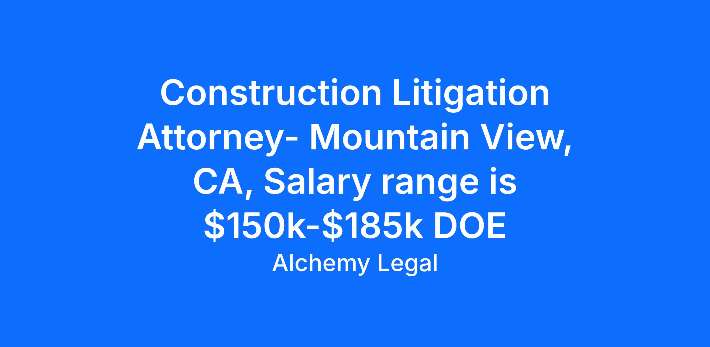 Construction Litigation Attorney- Mountain View, CA, Salary range is $150k-$185k DOE