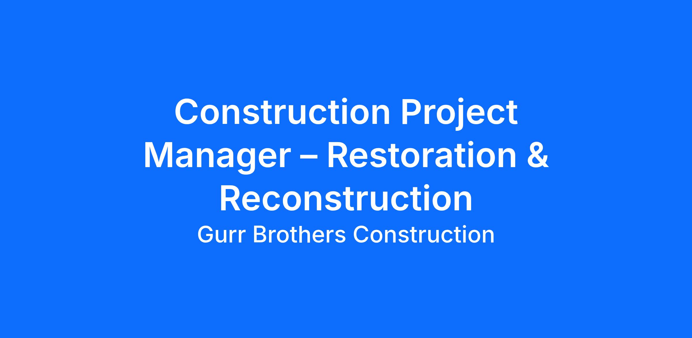 The Construction Project Manager – Reconstruction is responsible for overseeing residential and commercial rebuild projects from initial scope through final completion. This role manages, scheduling, subcontractors, job-site execution, customer communication, and financial performance to ensure projects are completed safely, on time, and within budget.