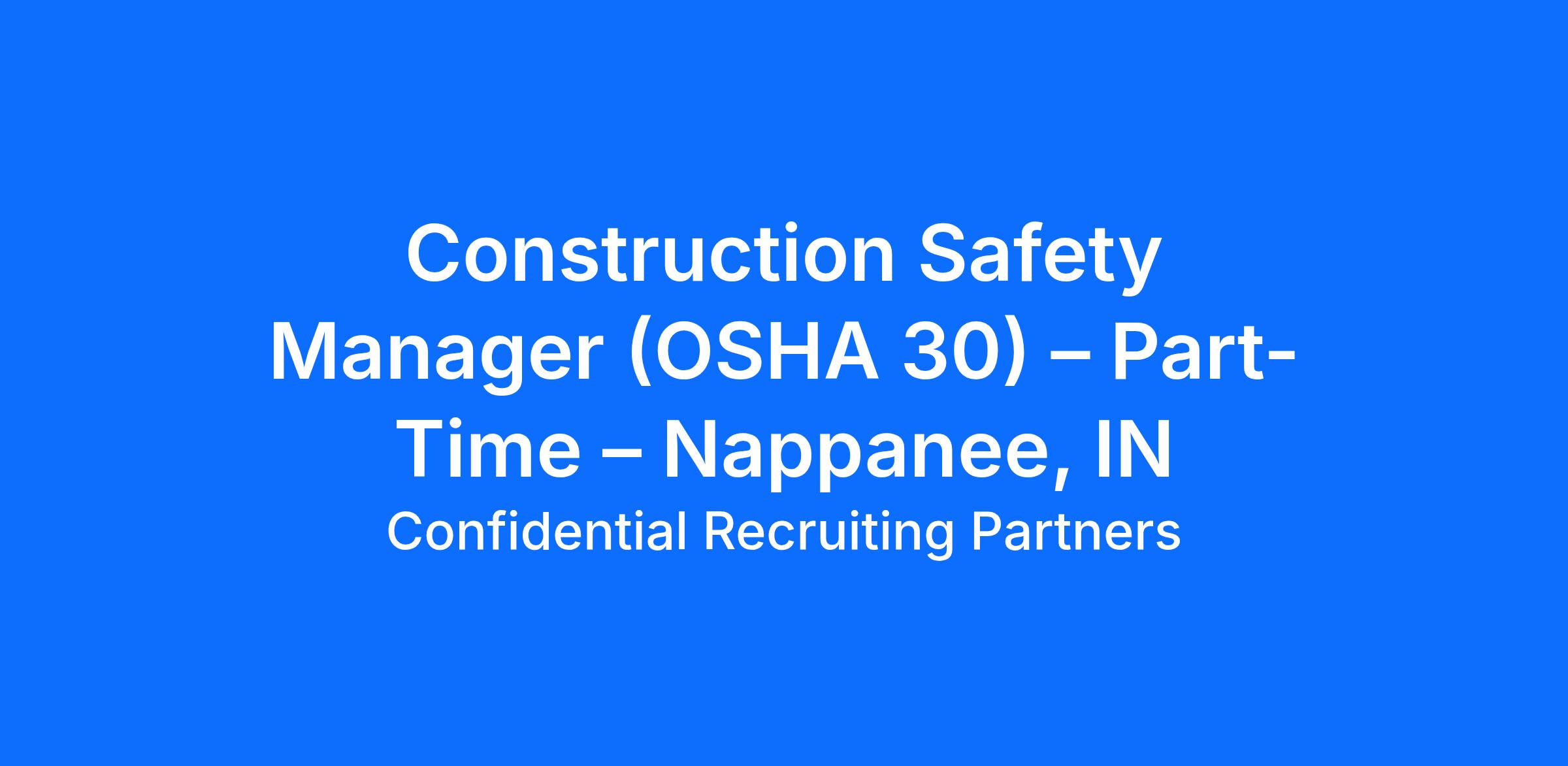 Construction Safety Manager (OSHA 30) – Part-Time – Nappanee, IN