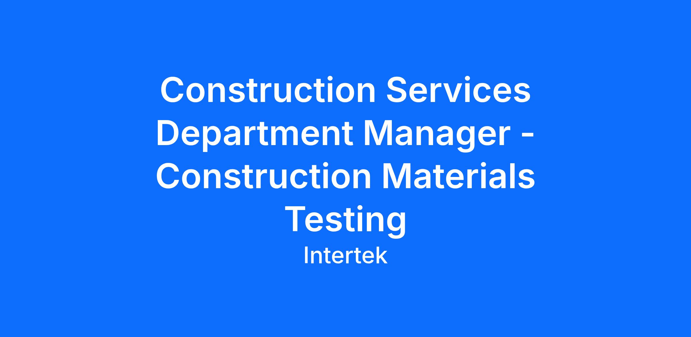 Intertek, a Nationally Recognized Testing Lab (NRTL) and leading provider of quality and safety solutions to many of the world’s leading brands and companies, is actively seeking a Department Manager to join our Professional Services Industries Inc. (Intertek-PSI) team in Tampa, FL. This is a fantastic opportunity to grow a versatile career in the architectural, engineering, and construction (A/E/C) industry.