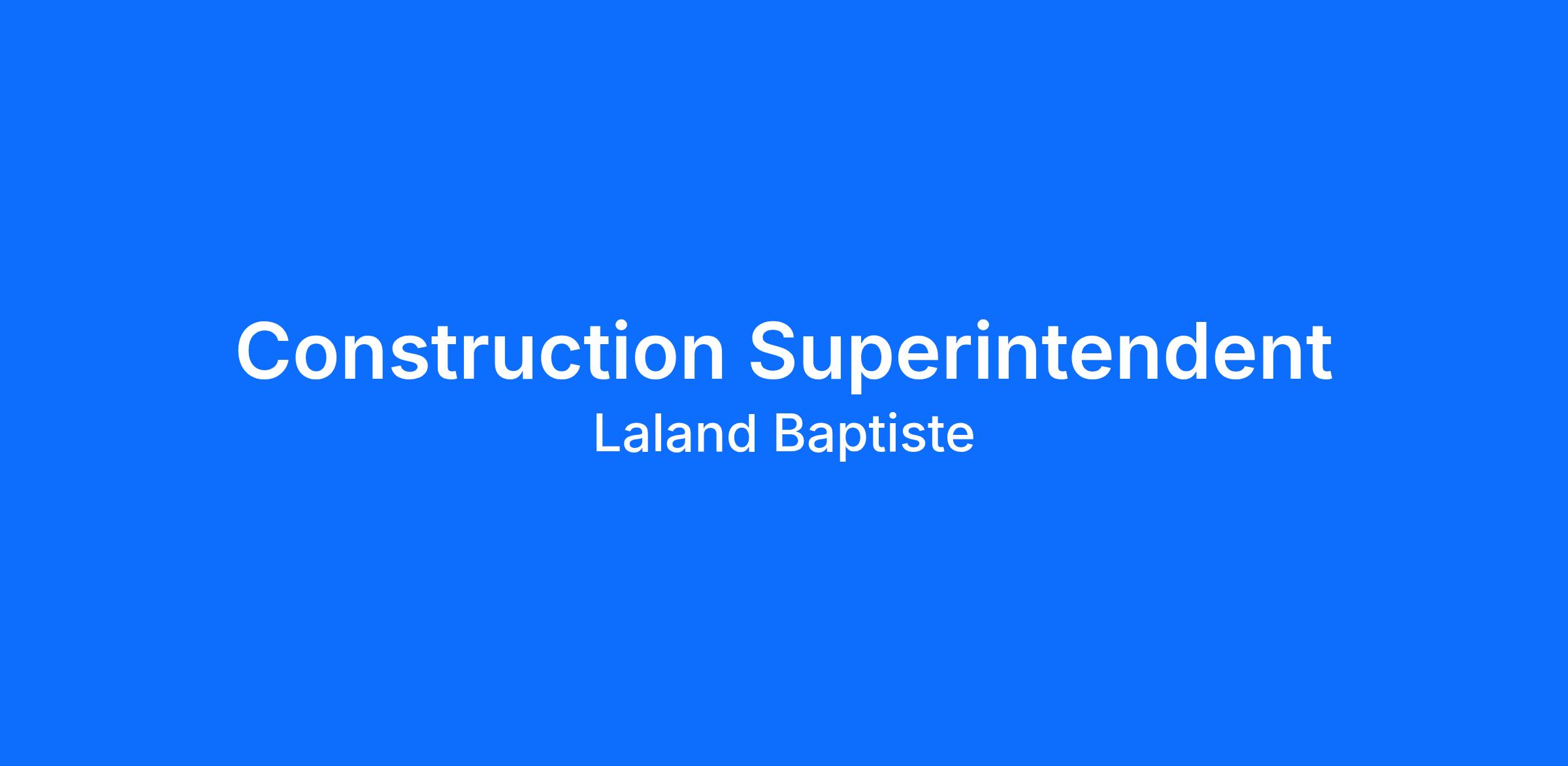 Construction Superintendent – Buffalo, NY Laland Baptiste, LLC is a construction management and consulting firm. Laland Baptiste provides innovative and professional services throughout all phases of the construction life cycle. We pride ourselves on being loyal and reliable to our customers, clients, and our greatest assets, our people. Laland Baptiste is dedicated to providing unparalleled services throughout the construction life cycle. These services include Construction Management, Program Management, Owners Representation, Resident Engineering, Inspection, Preconstruction Consulting, Change Order Review, Value Engineering, Administration Assistance, Document Control and Staff Augmentation.