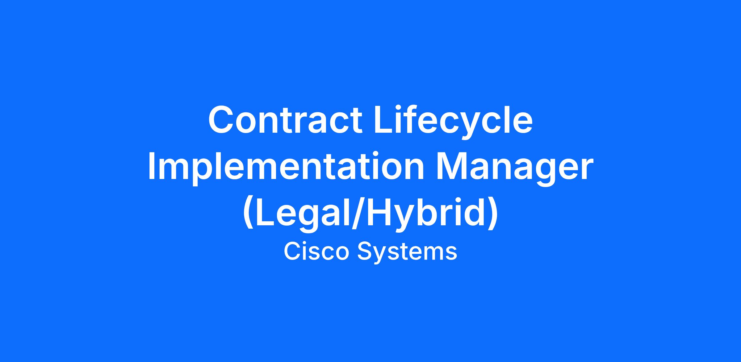 You will help empower Cisco's legal department and cross functional teams to align strategy, plan, and implement technical enablement programs in the Contract Lifecycle Management (CLM) space.